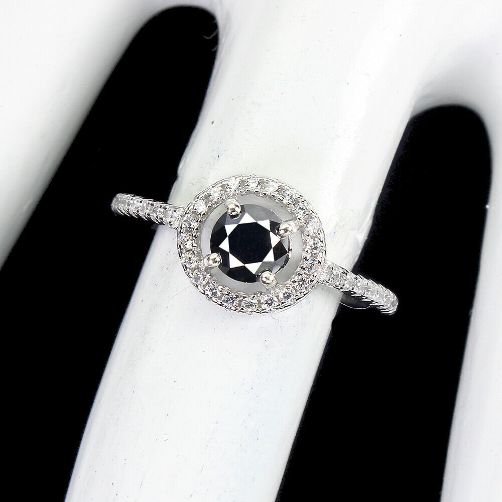 Natur Ring 0,615 ct schwarzer Diamant Größe 12