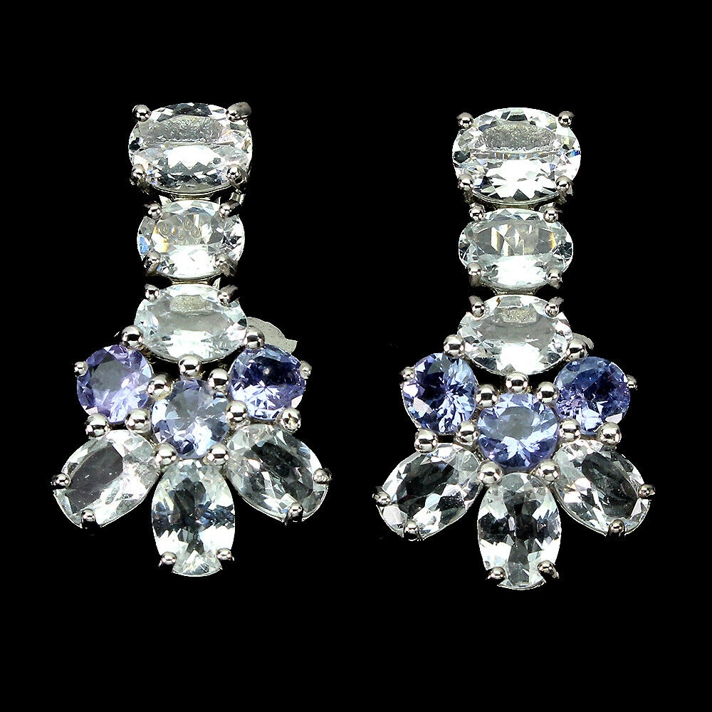 Natürliche Aquamarin Tansanit Silberohrringe 1