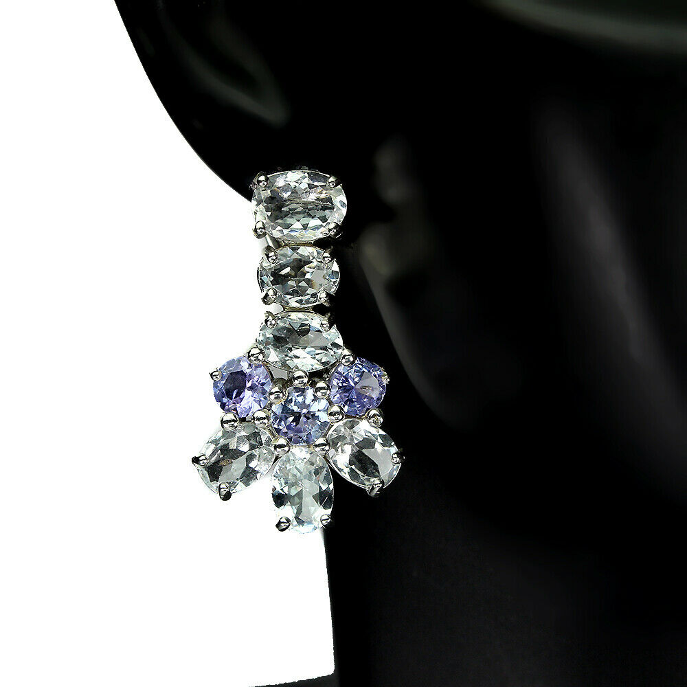 Wir bieten Ihnen neue, vergoldete 14 Karat Weißgold, Silber - 925 Ohrringe mit natürlichen Tansaniten und Aquamarinen.