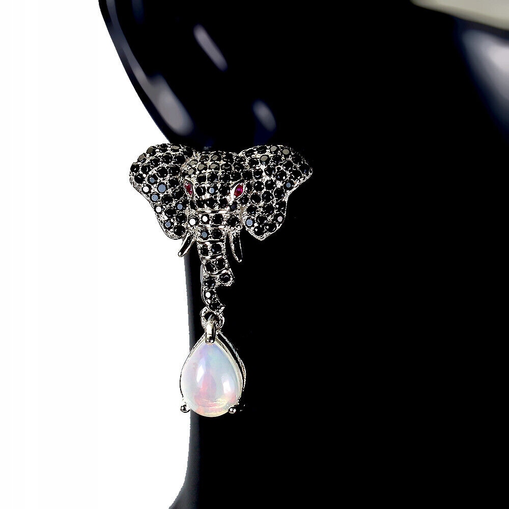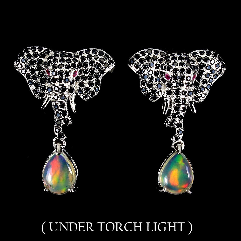 Natürliche Spinell Ohrringe Feueropal Elefant 3