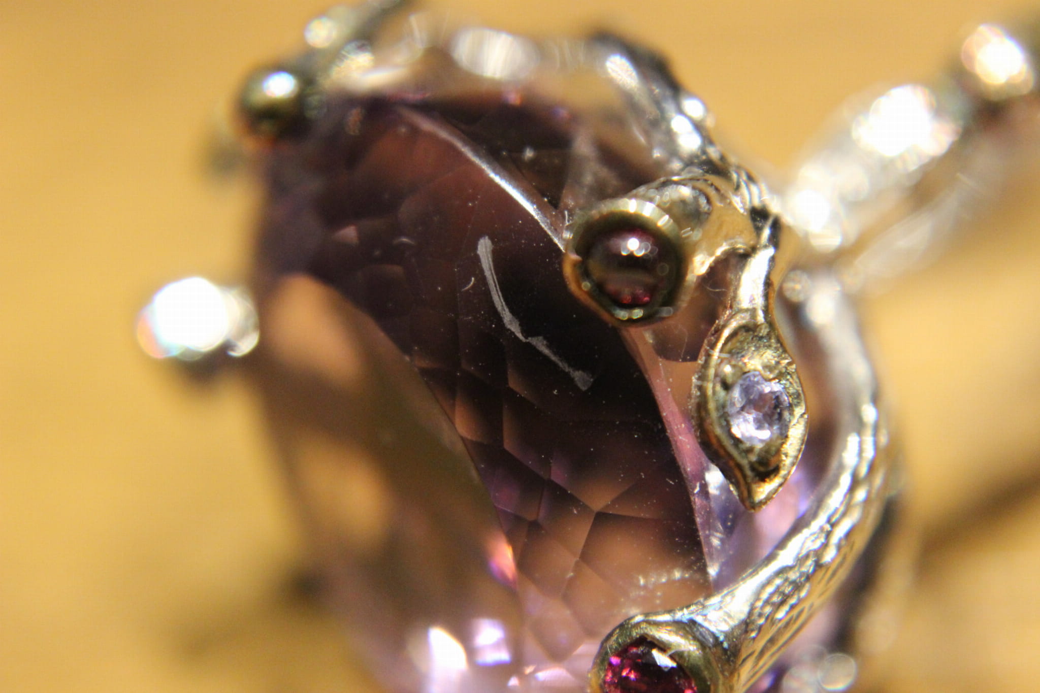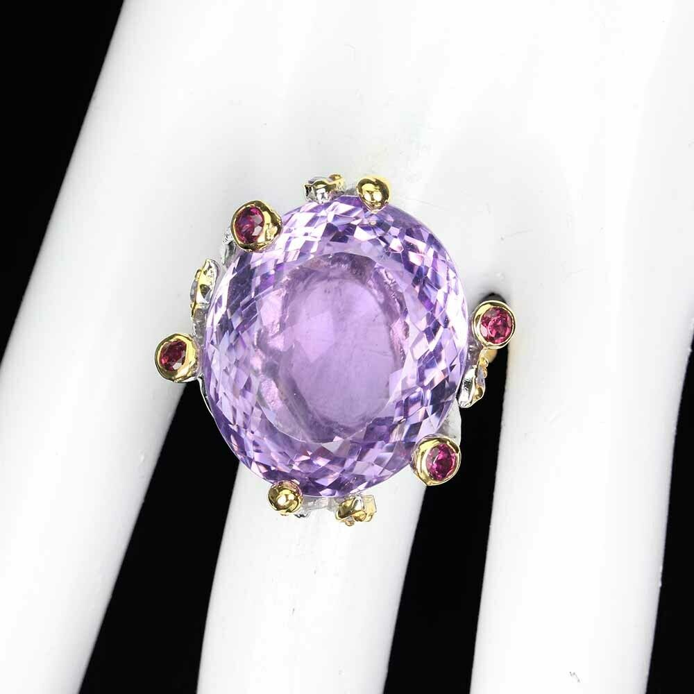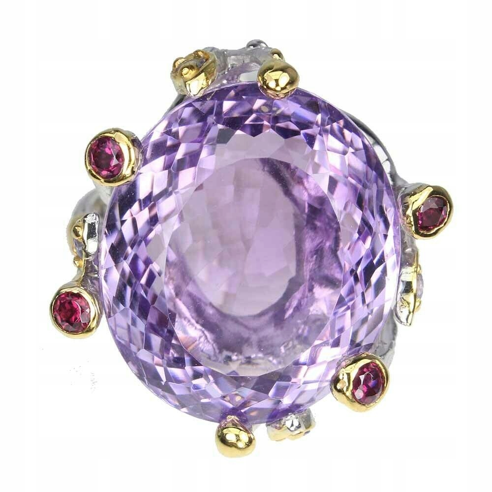 Ich verkaufe einen neuen (ohne Etikett), vergoldet mit Weiß- und Gelbgold 14 Karat, Silber - 925 Ring mit natürlichem Amethyst und Granaten (Rhodoliten).