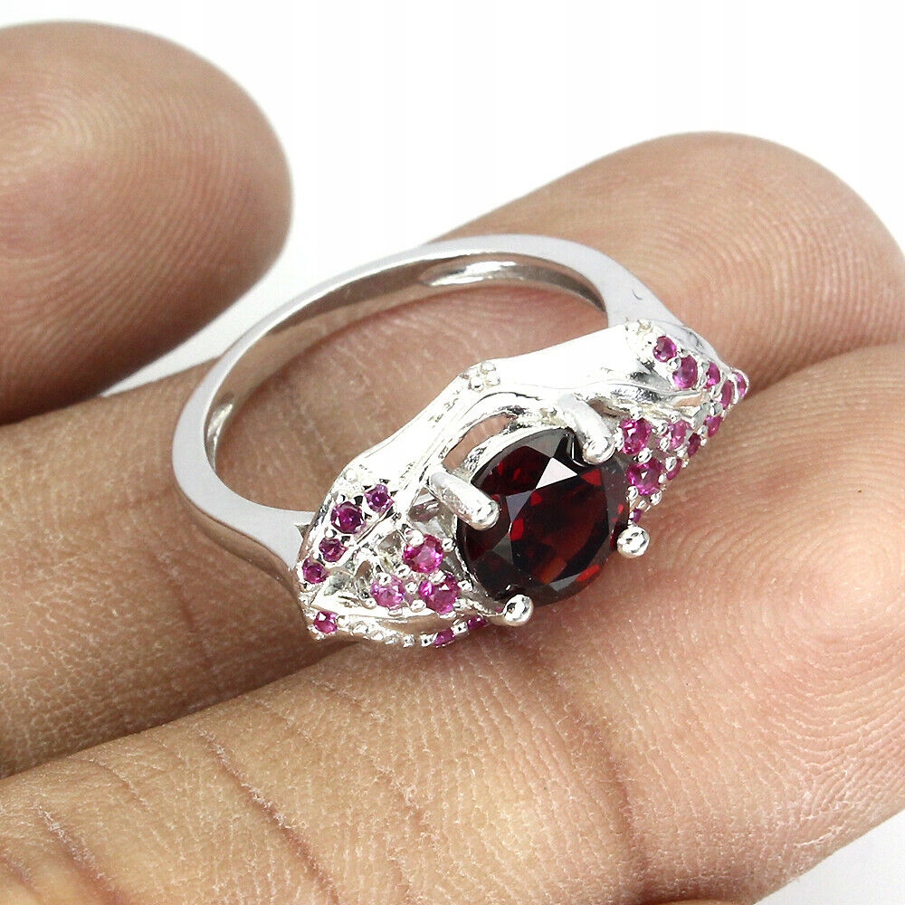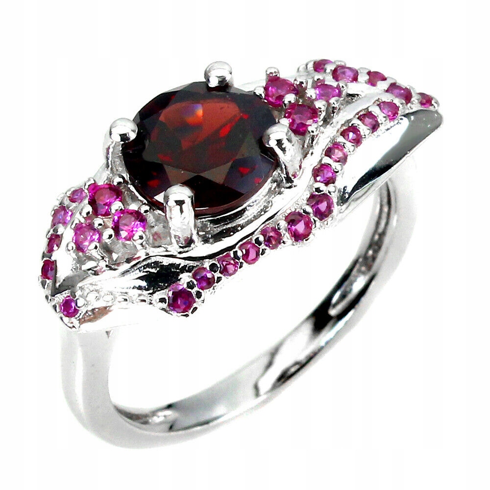 Natürlicher Silberring mit Granat, g 19 Zirkonia