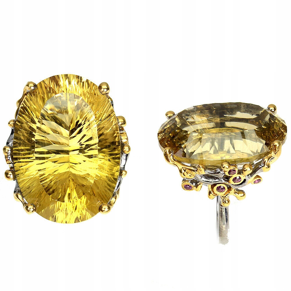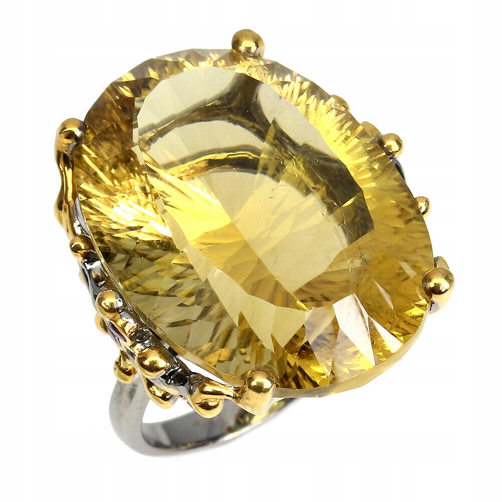 Ich biete einen neuen (ohne Etikett) gelb 14 Karat vergoldeten und schwarz rhodinierten Ring aus 925er Silber mit natürlichen Turmalinen und einem großen synthetischen Citrin von 43,18 ct in einem schönen Schliff zum Verkauf an.