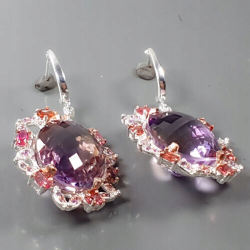 about you Neu, vergoldet mit Rosé- (Rot-) und Weißgold, Silber - Feinheit 925 (spektrometrisch ca. 0,899) Ohrringe mit Natur: Ametrine zus. ca. 73ct, Amethyste, Turmaline, Saphire. Sie haben ein Zertifikat und eine Bewertung von 2.500 PLN. Sie sind: gegossen, gelötet, kamerabeschichtet, verzinkt.