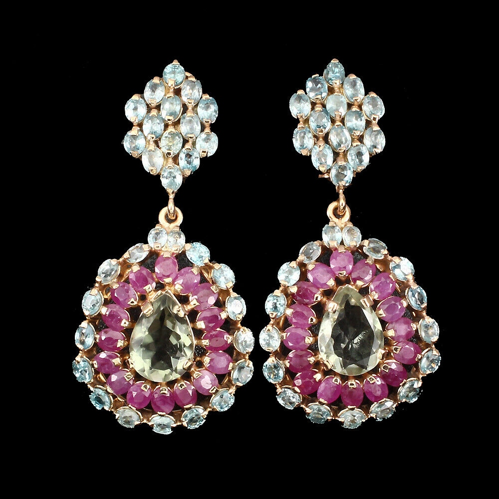 Ohrringe 925 Rubine Zirkone Quarz zertifiziert