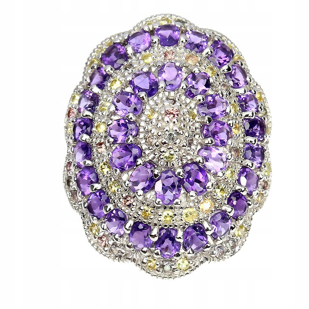 Wir bieten Ihnen einen neuen, weißvergoldeten 14 Karat Silber - 925er Ring mit natürlichen Amethysten und Songea-Saphiren an.