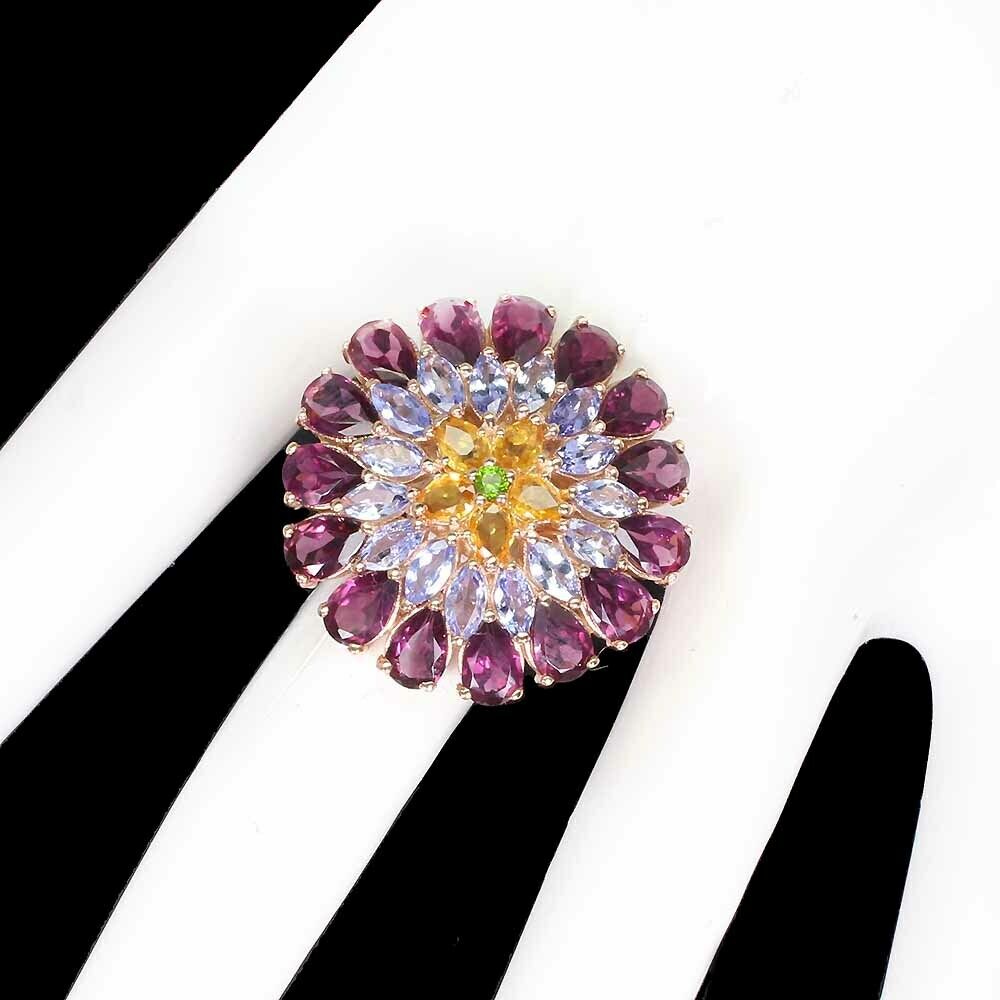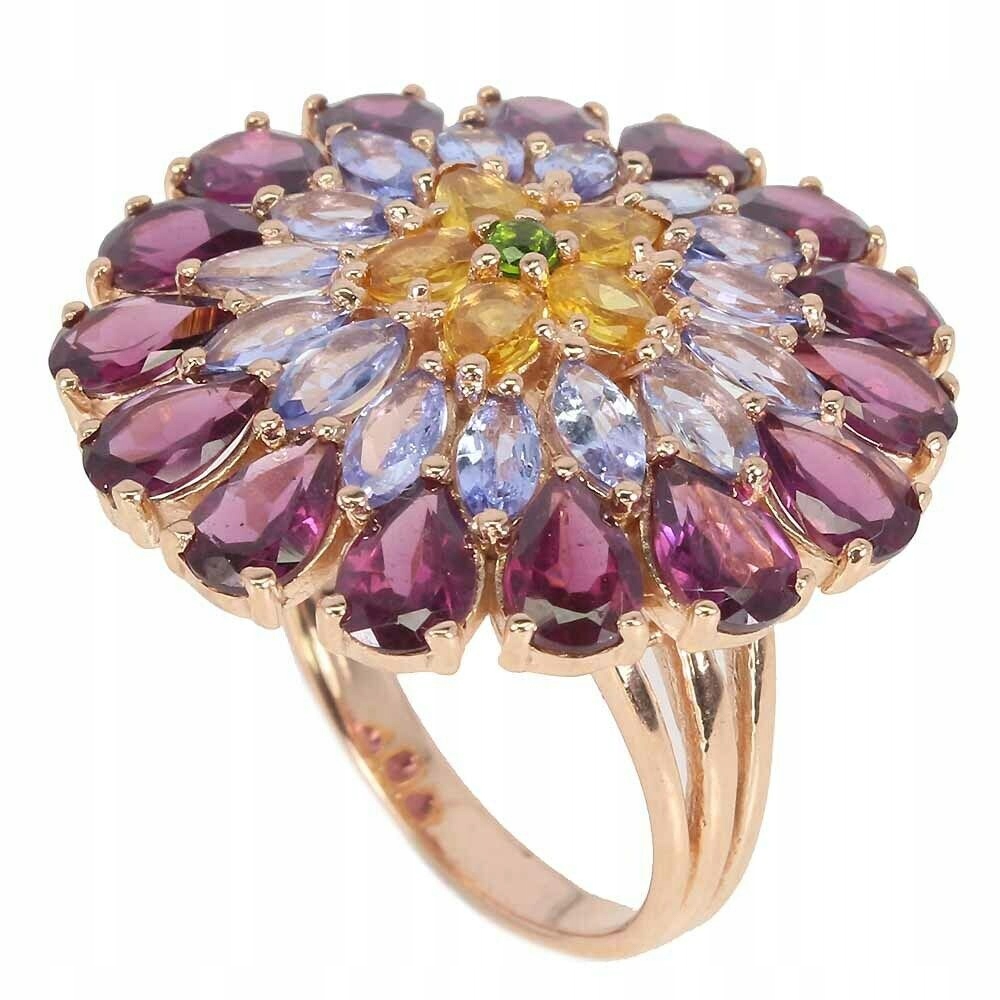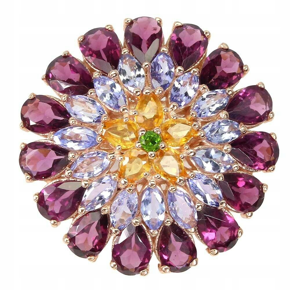 Wir bieten Ihnen einen neuen, 14 Karat rosévergoldeten, Silber - 925er Feinheitsring mit natürlichen Granaten (Rhodoliten), Diopsiden, Citrin und Tansaniten an.
