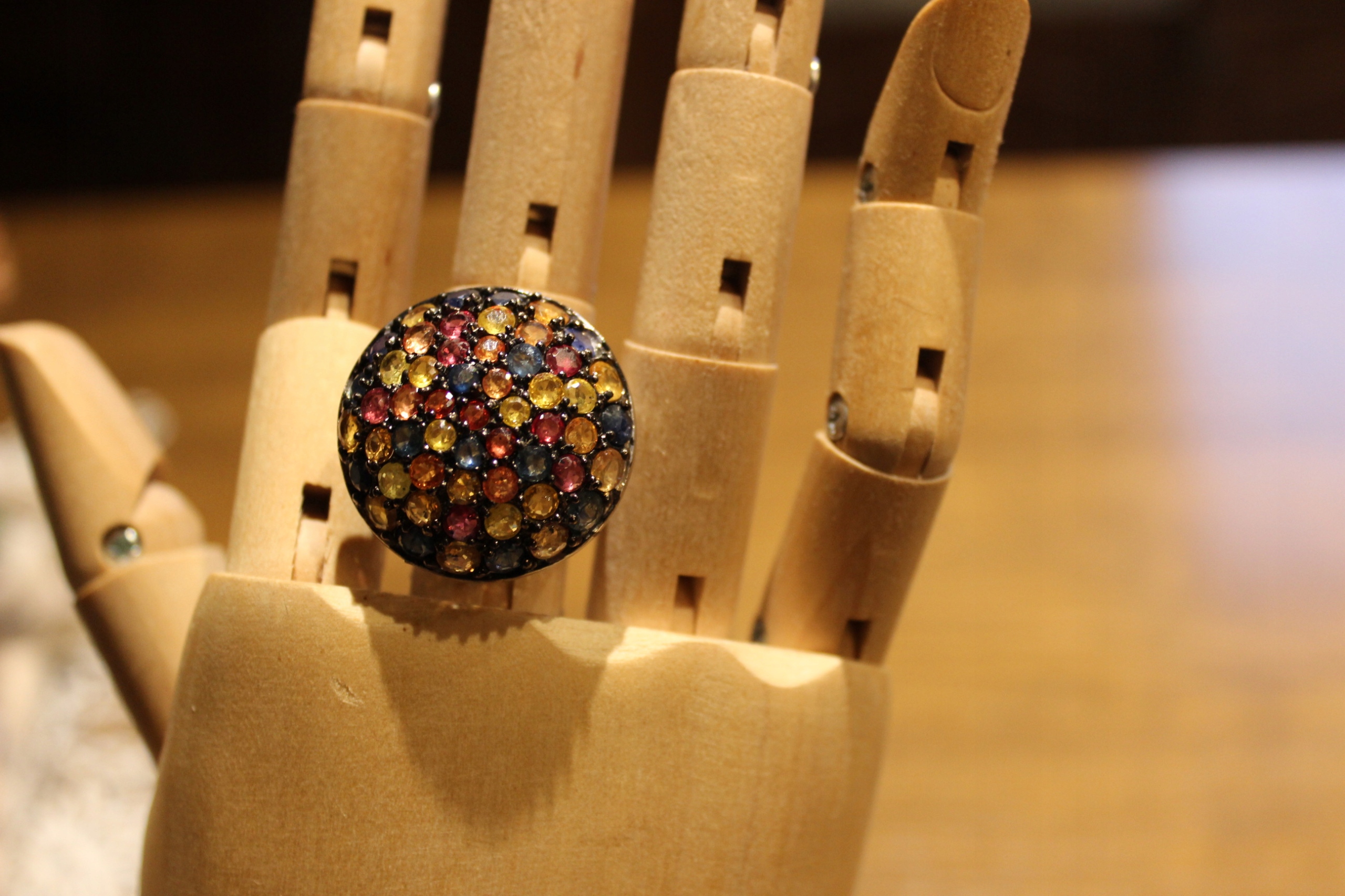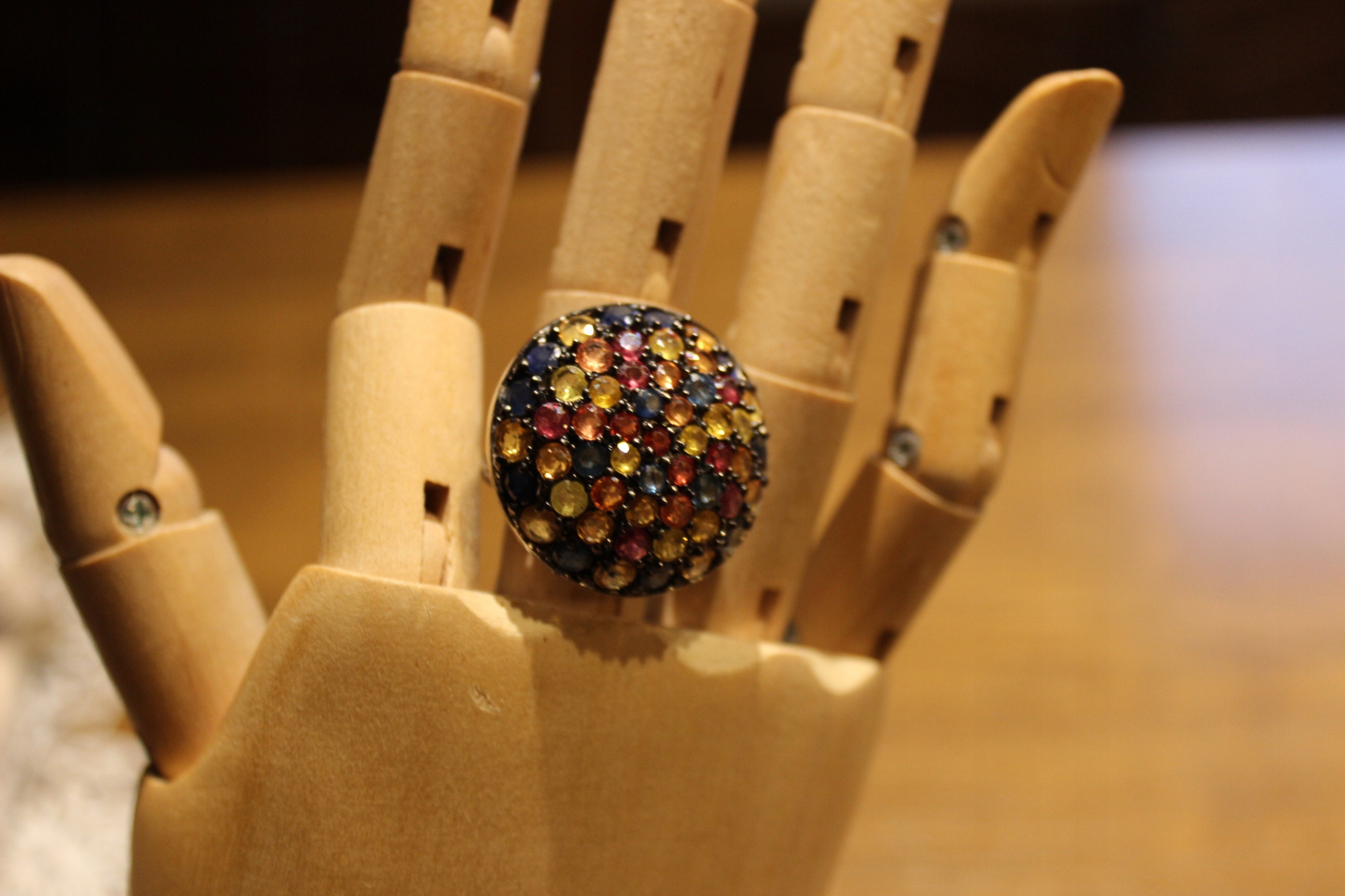 Ich verkaufe einen neuen (ohne Etikett), vergoldeten 14 Karat Weißgold - 925er Ring mit natürlichen Rubinen und Saphiren.