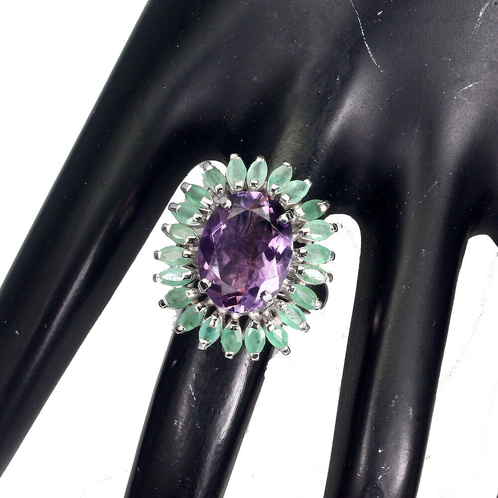 Ring 925 natürliche Amethyst Smaragde Größe 17