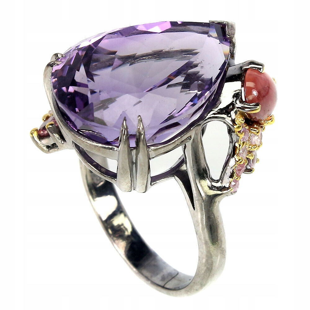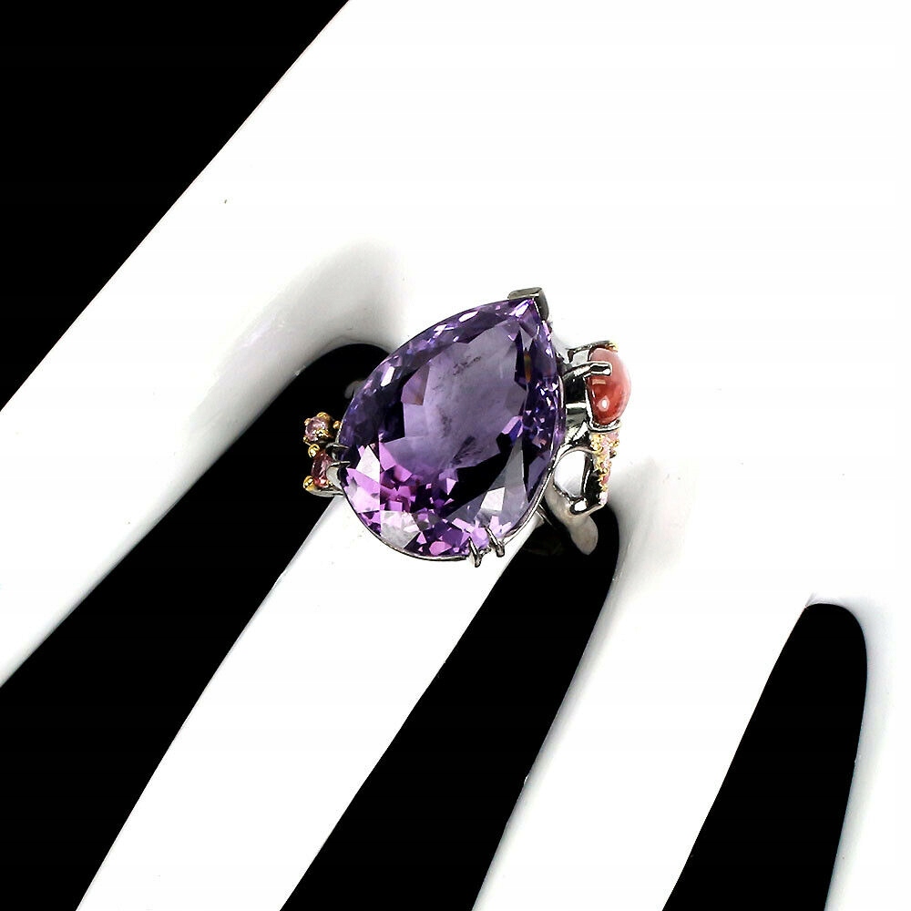 Ich verkaufe einen neuen (ohne Etikett) 14 Karat Gelbgold und schwarz rhodinierten 925er Silberring mit natürlichem 15,65 ct Amethyst, Rubin und Songea-Paparaja-Saphiren.