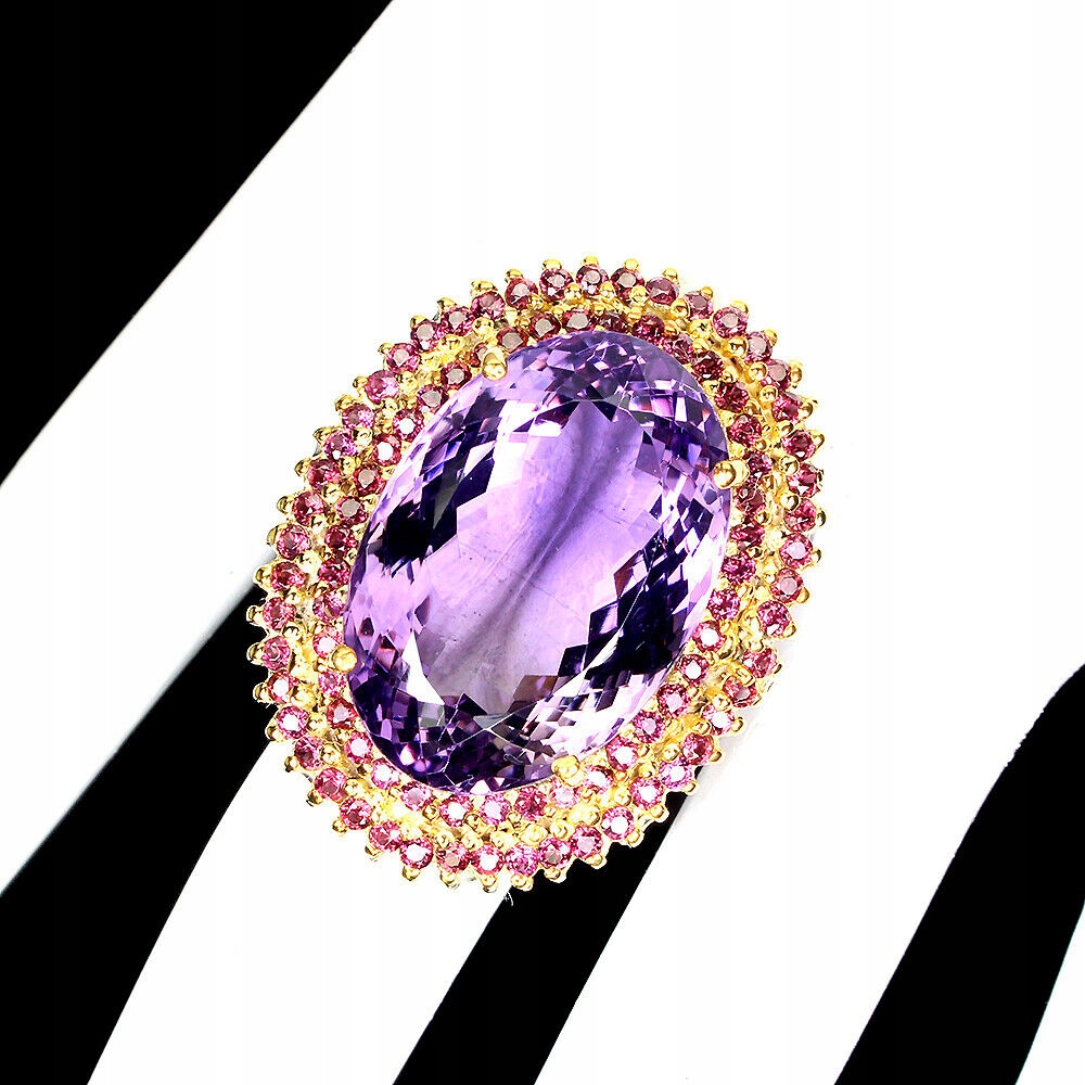 Ich biete einen neuen (ohne Etikett) vergoldeten Ring aus Gelb- und Weißgold 14 Karat, Silber - 925 mit natürlichem Amethyst von 34,86 ct und Granaten (Rhodoliten) zum Verkauf an.