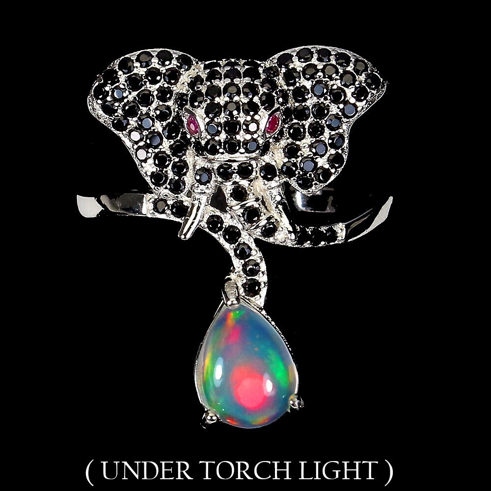 Ring Feueropal schwarze Spinelle Größe 14 Elefant