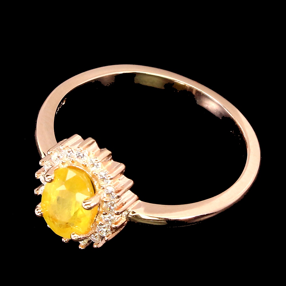 Wir bieten Ihnen einen neuen, Silber - 925 - vergoldeten 14K Roségold Ring mit natürlichem gelbem Saphir und Zirkonia an.