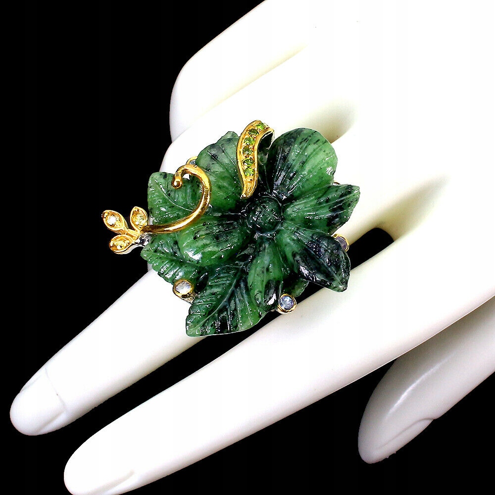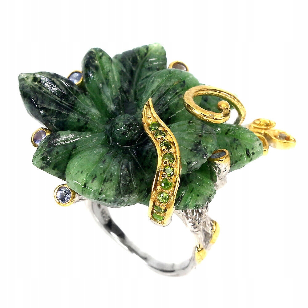 Wir bieten Ihnen einen neuen, Silber - 925 - vergoldet mit 14K Weiß- und Gelbgoldring mit natürlichen Rubinen in Zoisit, Tansaniten, Diopsiden und Songea-Saphiren an. Schöne handgeschnitzte Blume.