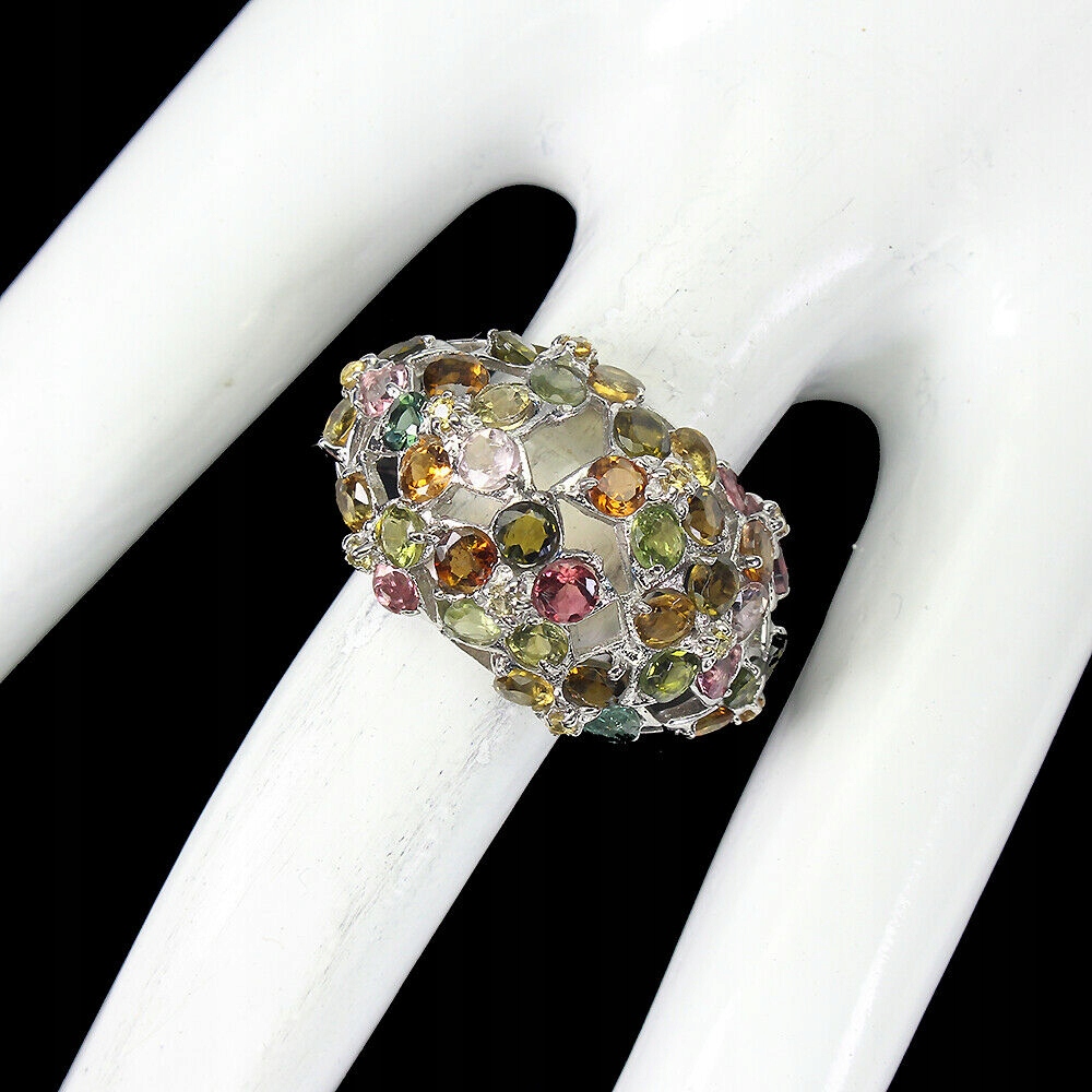 Wir bieten Ihnen einen neuen, 14 Karat weiß vergoldeten Silber-925-Ring mit natürlichen Turmalinen und Songea-Saphiren an.