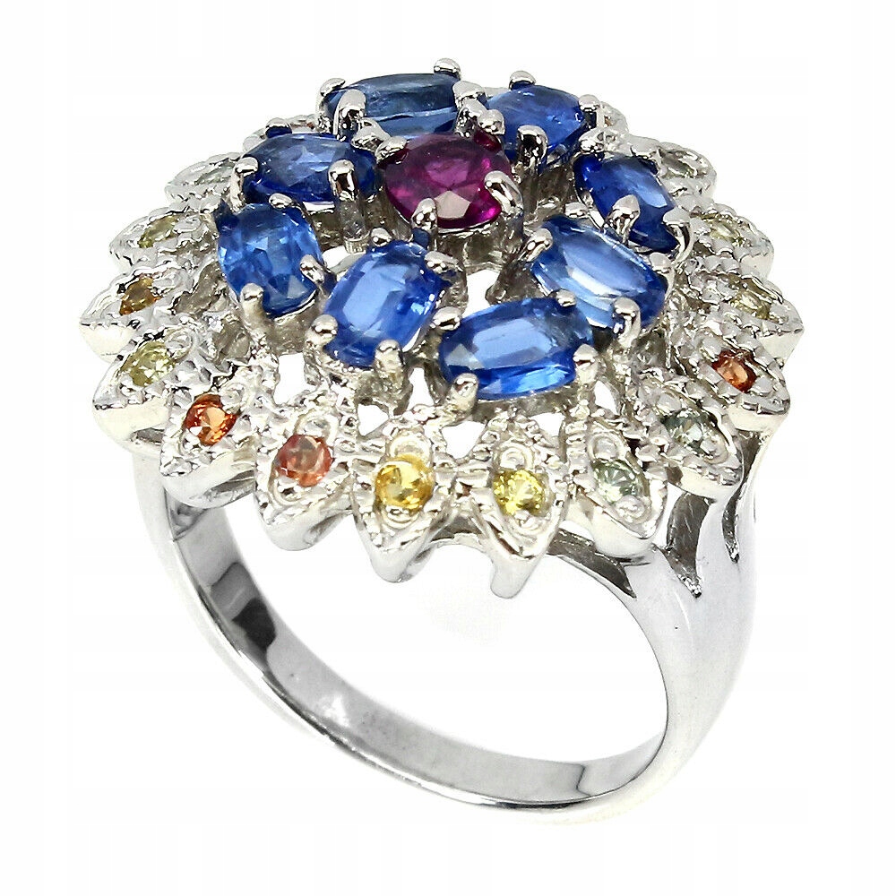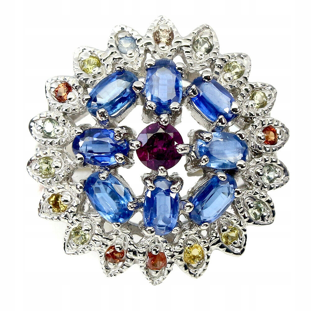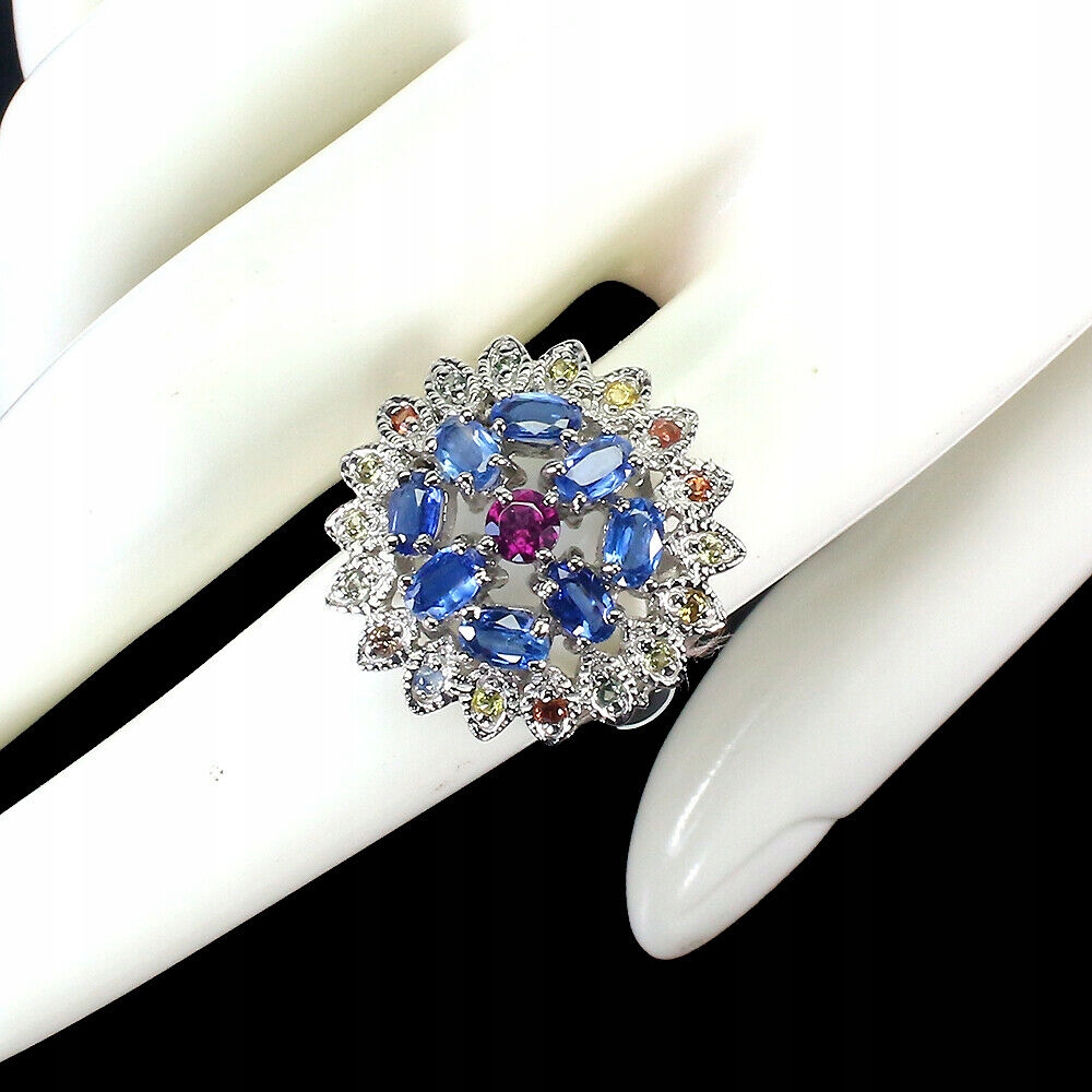 Wir bieten Ihnen einen neuen, 14 Karat Weißgold, Silber - 925er Feinheitsring mit natürlichen Kyaniten, Granat (Rhodolith) und Songea-Saphiren an.
