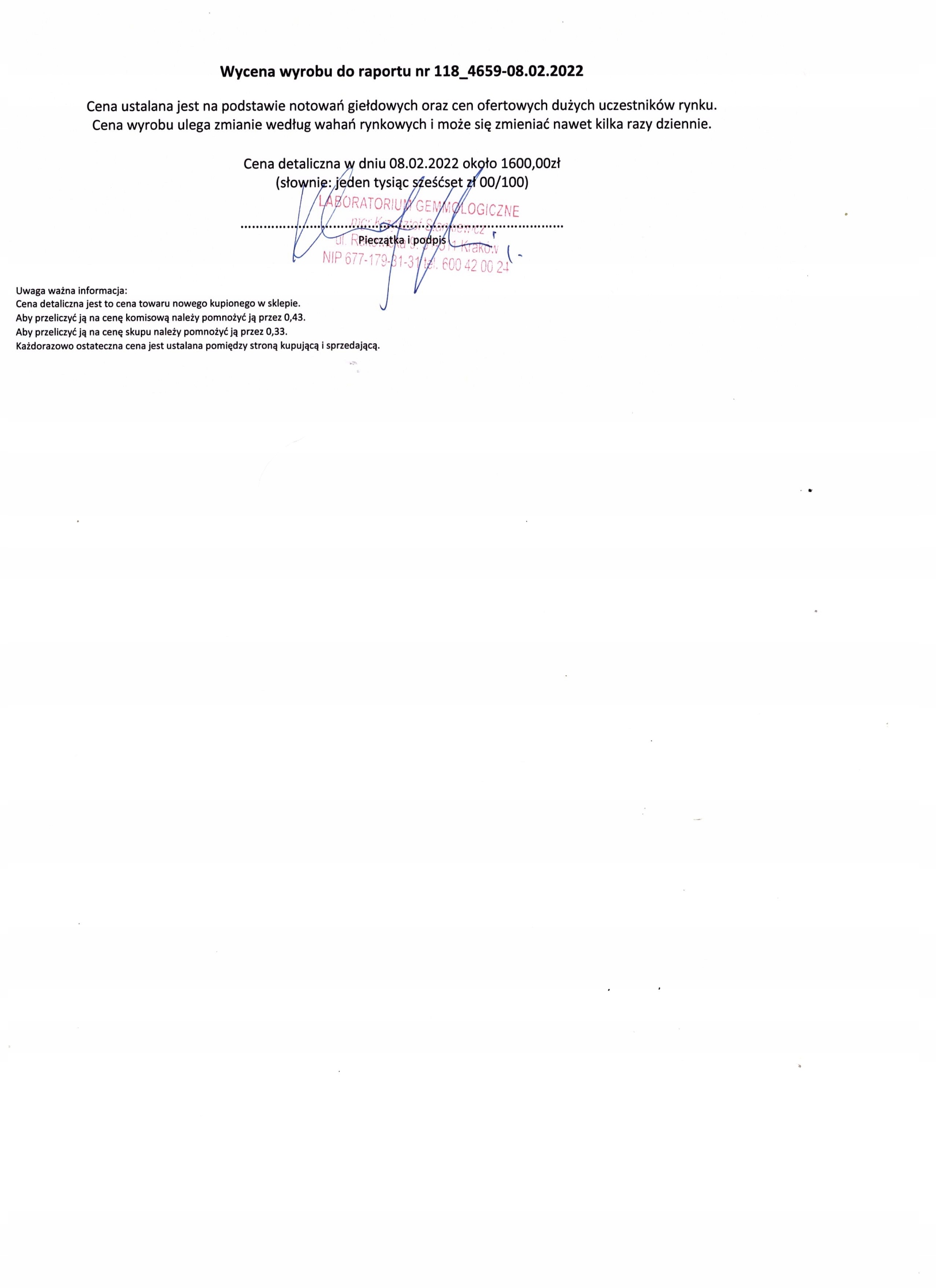 Der Ring hat ein Zertifikat und einen Wert von 1.600 PLN.