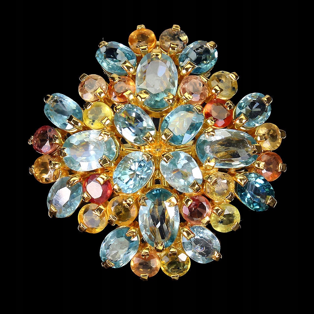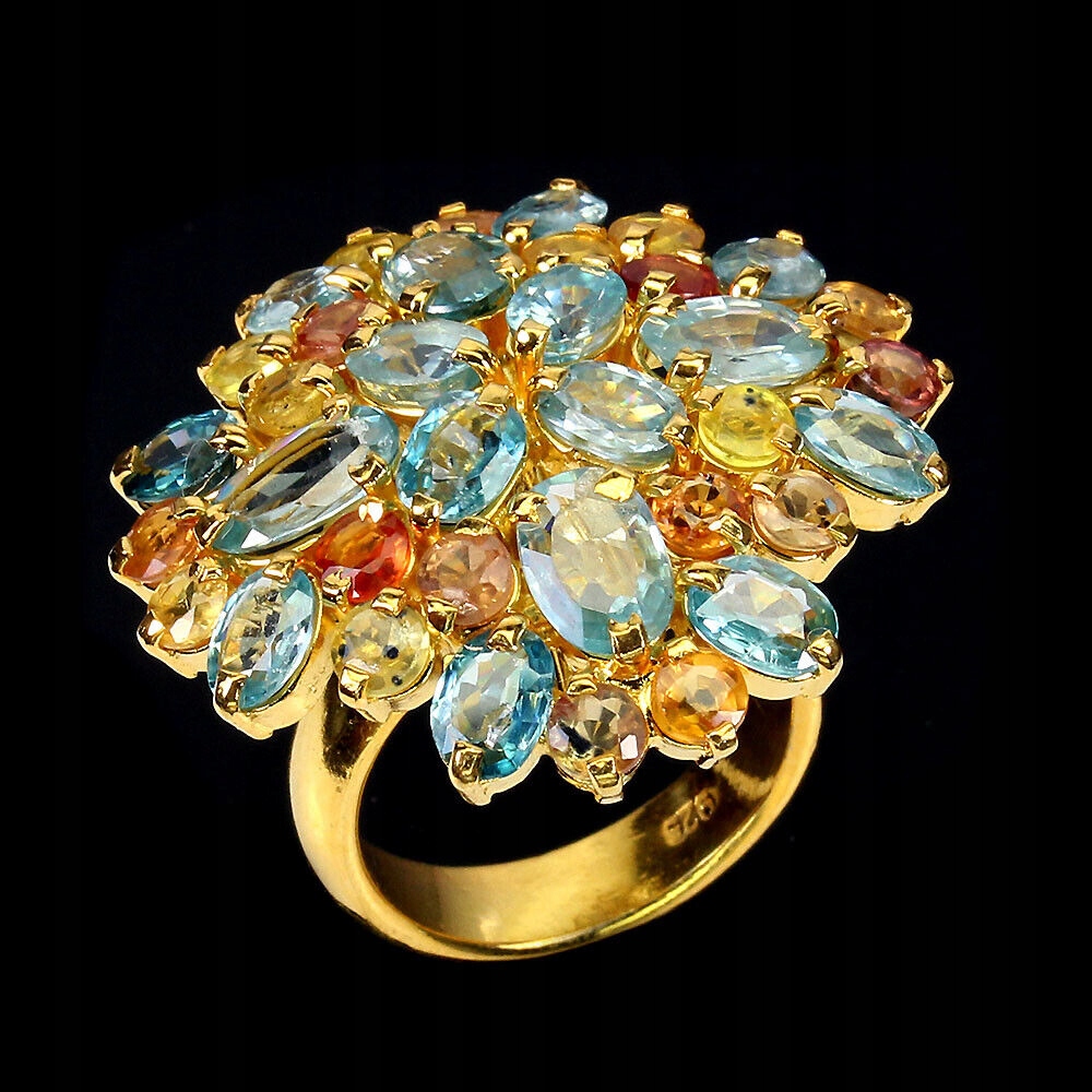 Wir bieten Ihnen einen neuen, 14K Gelbgold vergoldeten 925er Silberring mit natürlichen Zirkonen und Songea-Saphiren. Zirkone sind wunderschöne, seltene Edelsteine mit sehr interessanten Eigenschaften, die in Schmuckstücken geschätzt werden.