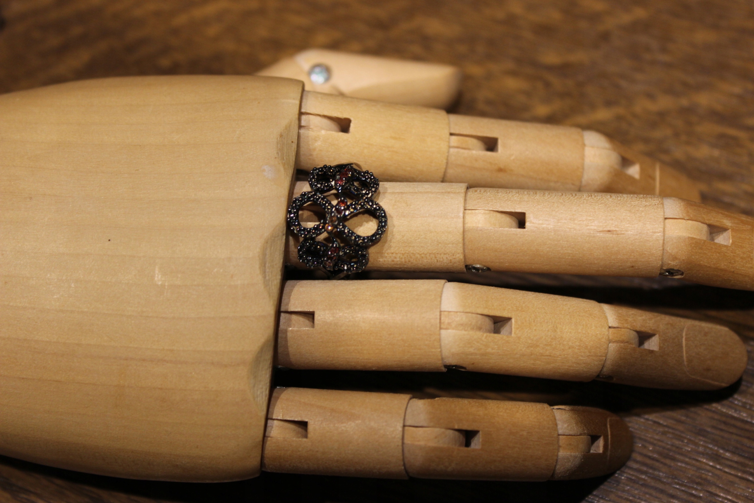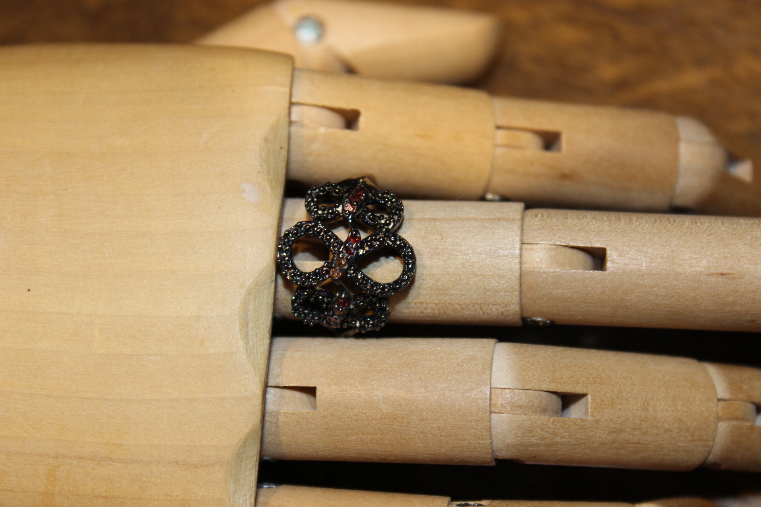 Wir bieten Ihnen einen neuen, schwarz rhodinierten Ring aus Silber 925 mit natürlichen orangefarbenen Diamanten an.