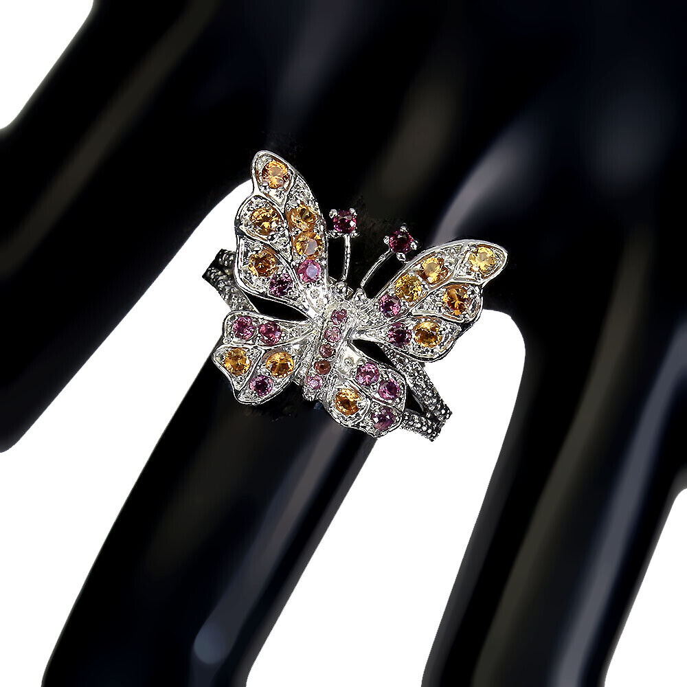 Ring natürliche Granate Citrin Größe 15 Schmetterling