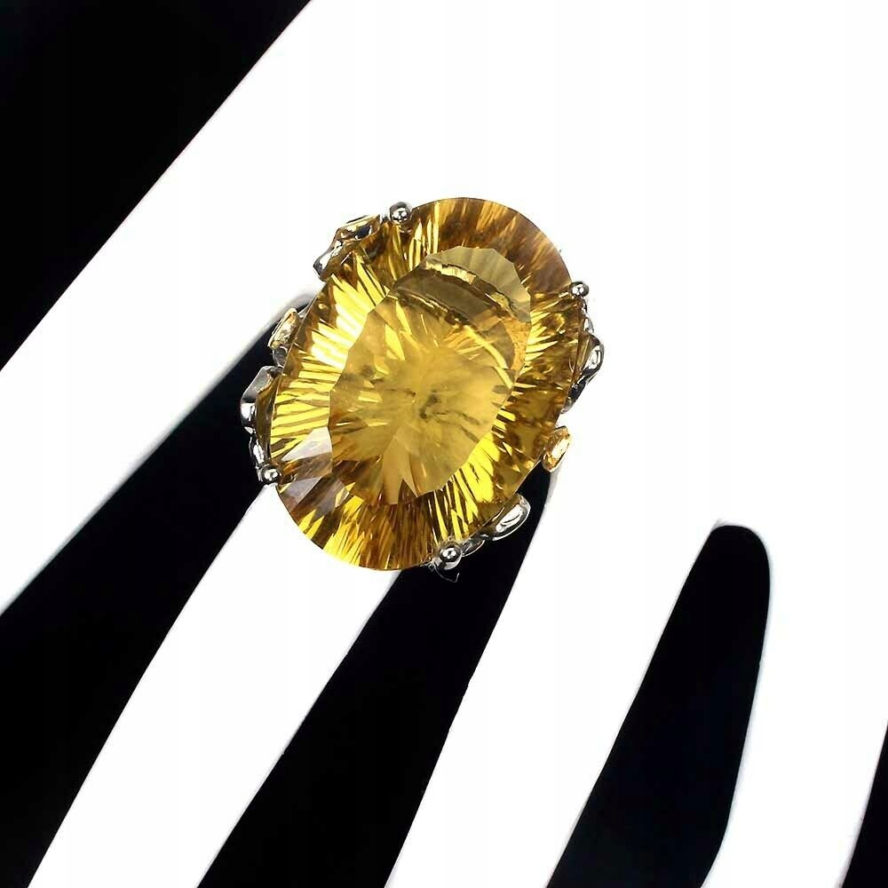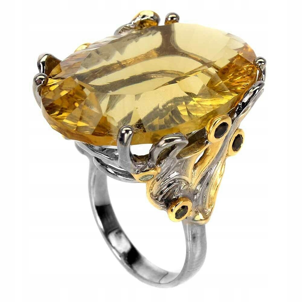 Ich biete einen neuen (ohne Etikett) gelb 14 Karat vergoldeten und schwarz rhodinierten Ring aus 925er Silber mit natürlichen Saphiren und Turmalinen und einem großen synthetischen Citrin in einem schönen Schliff von 36,30 ct an.