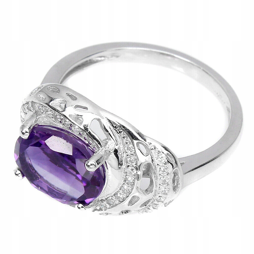 Ich verkaufe einen neuen (ohne Etikett), vergoldet mit 14 Karat Weißgold, Silber - 925 Ring mit natürlichem Amethyst und Zirkonia.