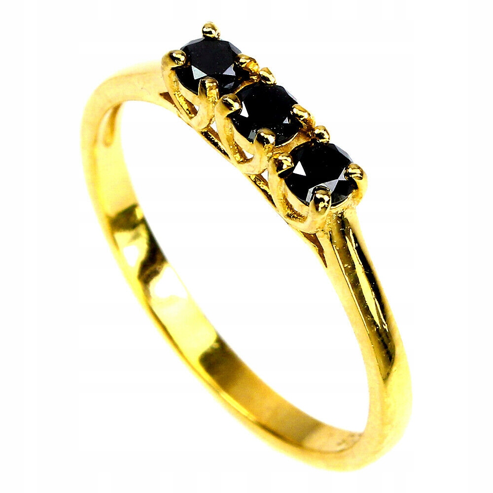 Wir bieten Ihnen einen neuen, 14 Karat Gelbgold, Silber - 925 0,45 Karat Ring mit natürlichen schwarzen Diamanten an.