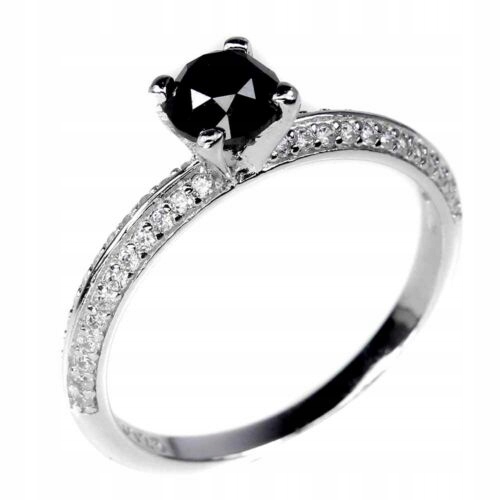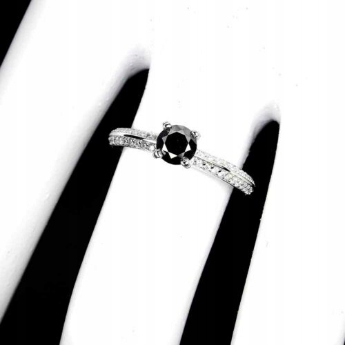 Ich verkaufe einen neuen (ohne Etikett), vergoldet mit 14 Karat Weißgold, Silber - 925 0,6 Karat Ring mit einem natürlichen schwarzen Diamanten und Zirkonia.