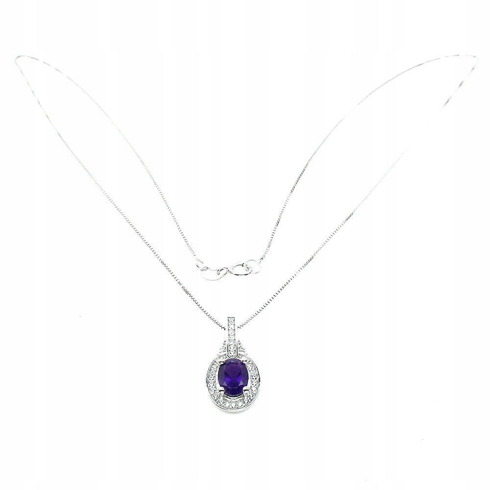 Wir bieten Ihnen eine neue, vergoldete Halskette aus 14 Karat Weißgold, Silber - 925 mit natürlichem Amethyst und Zirkonia.