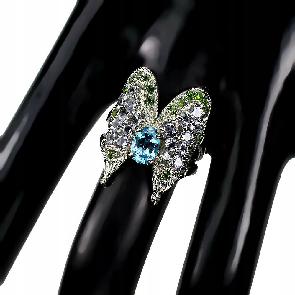 Wir bieten Ihnen einen neuen, 14 Karat Weißgold, Silber - 925er Feinheitsring mit natürlichen Tansaniten, Diopsiden und Swiss Blue Topas an.