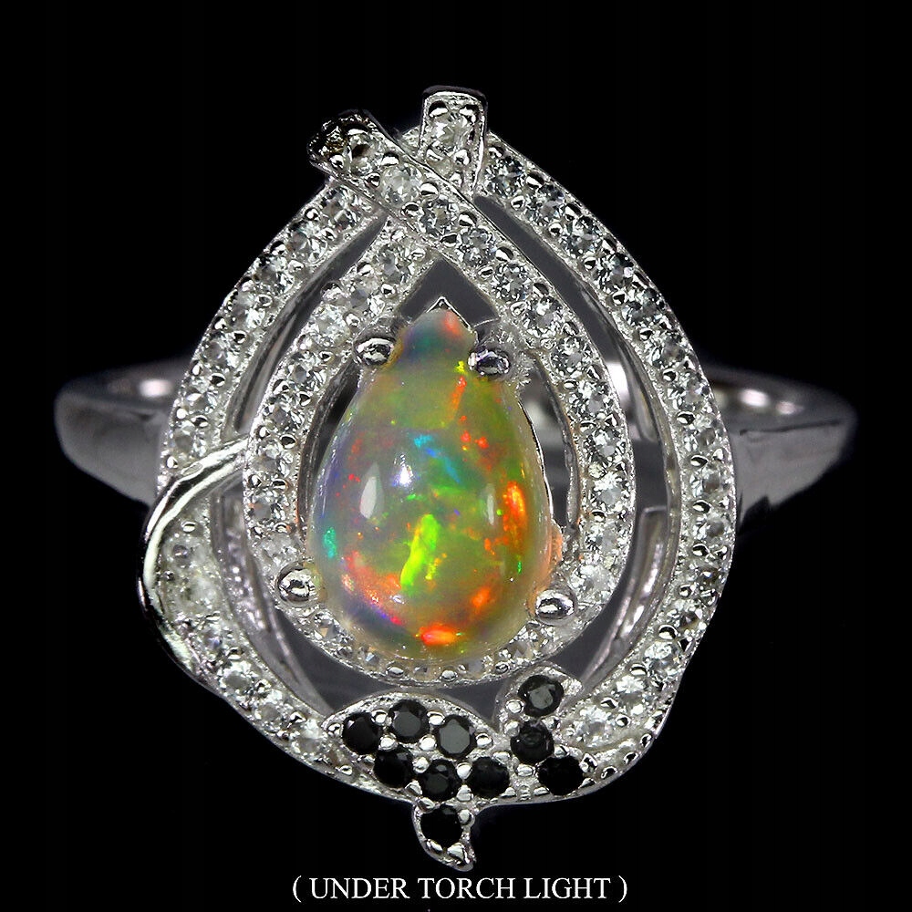 Silber Größe 14 925 Ring feurige Opal Spinelle