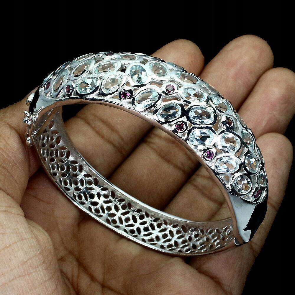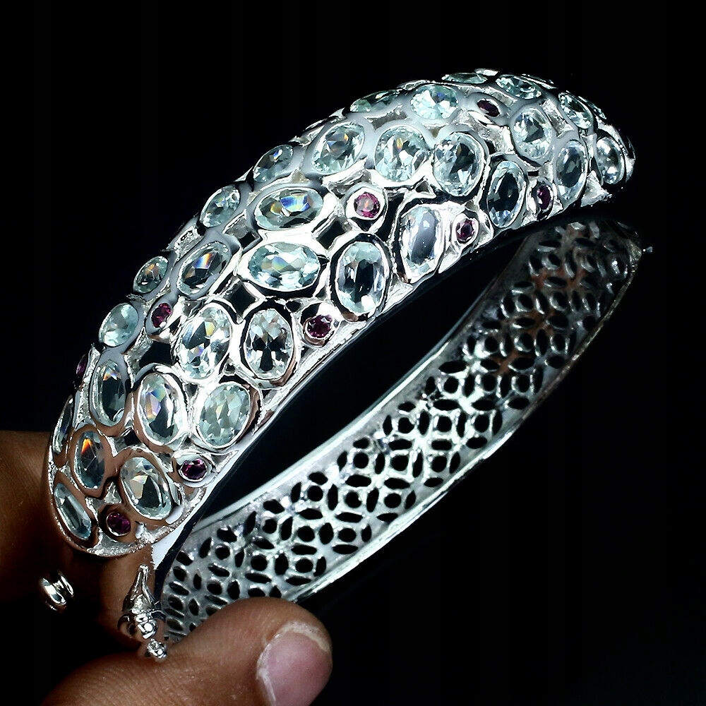 Silberarmband, natürlicher Aquamarin, Granat