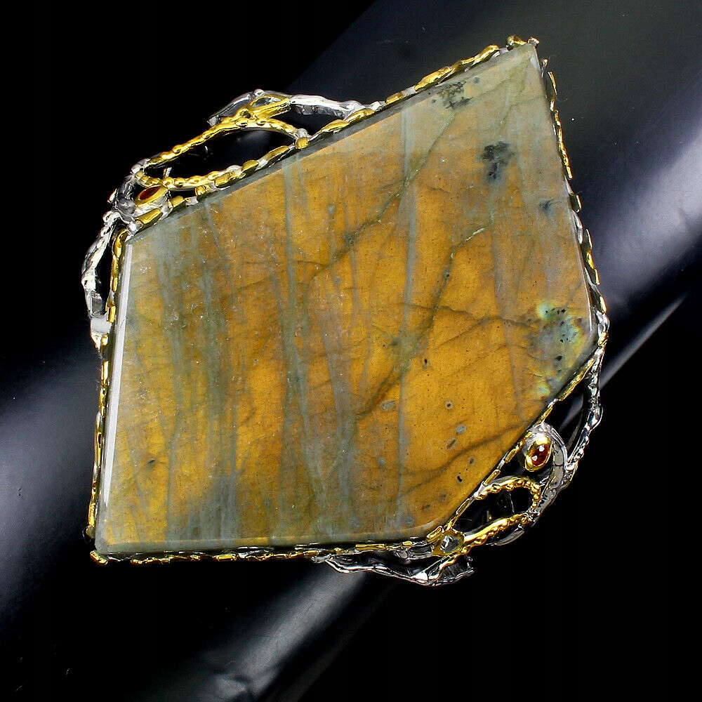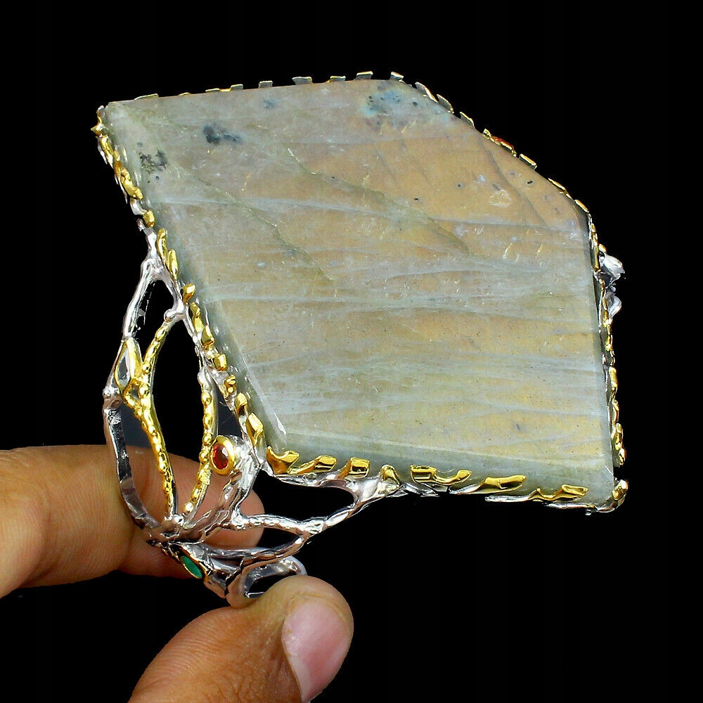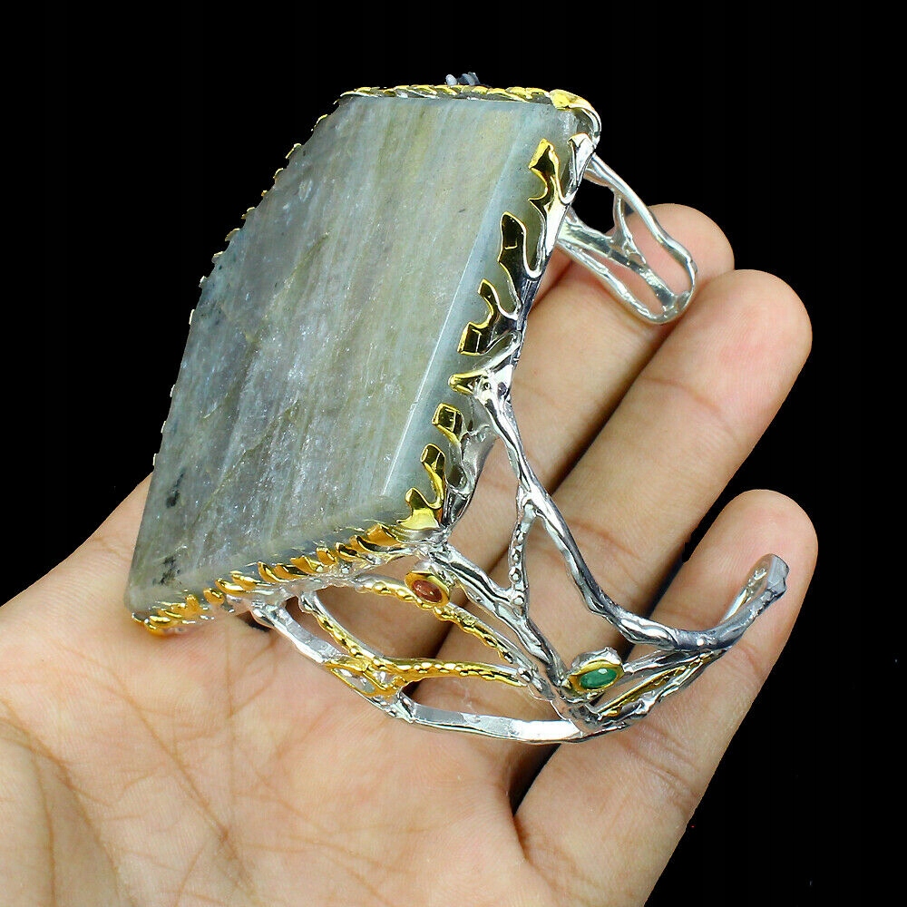 Ich verkaufe ein neues (ohne Etikett), vergoldetes 14 Karat Gold - 925 Silberarmband mit natürlichem Labradorit, Smaragden und Saphiren.