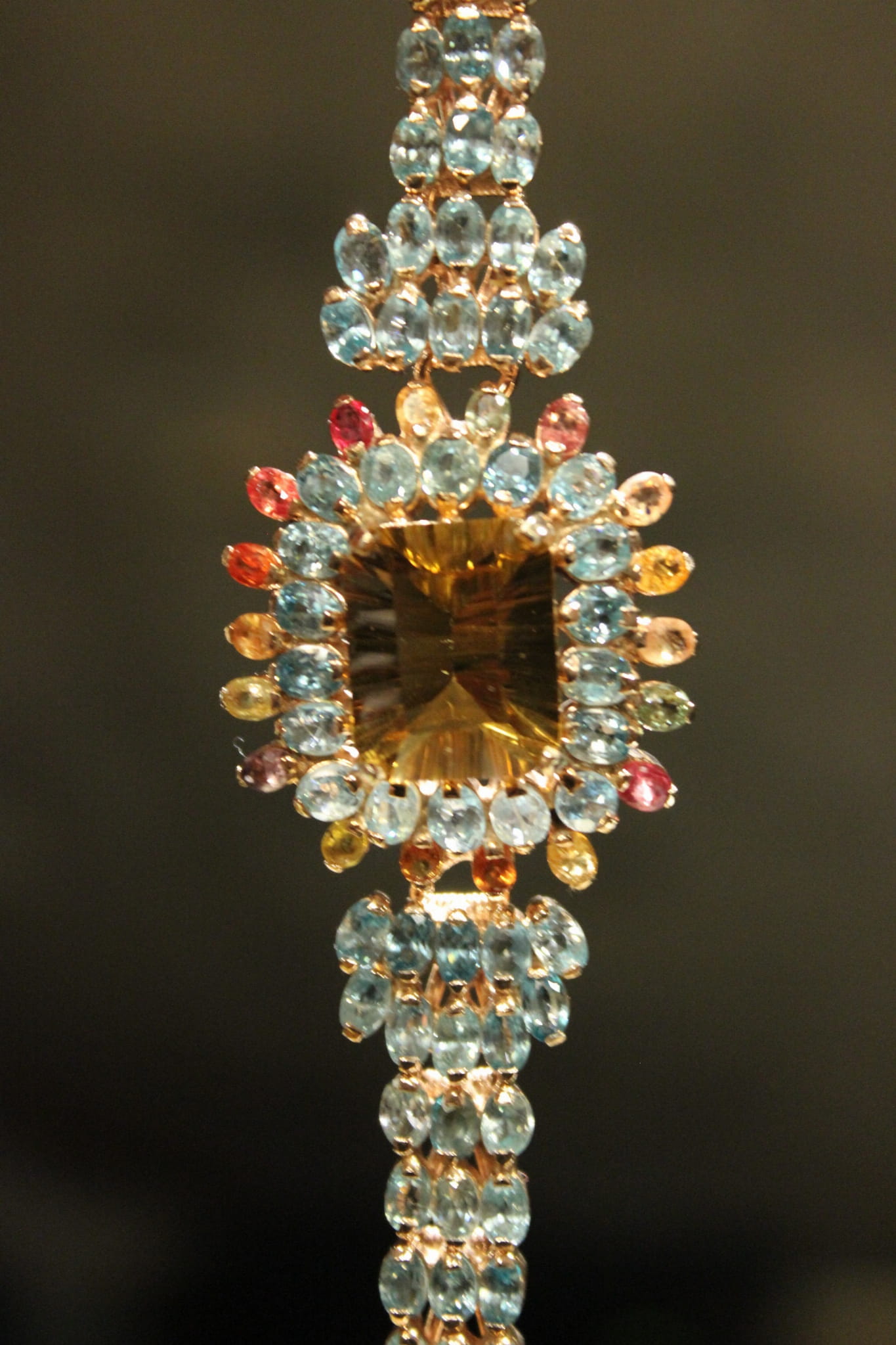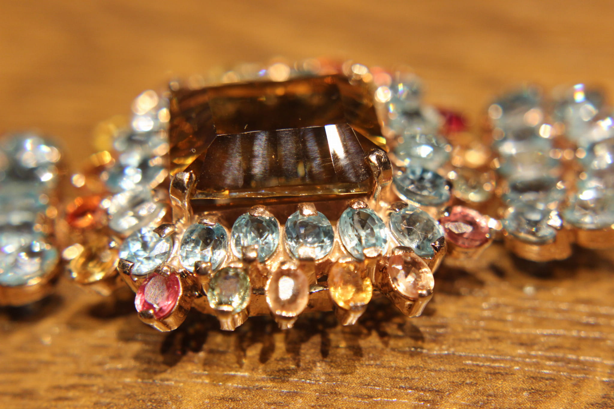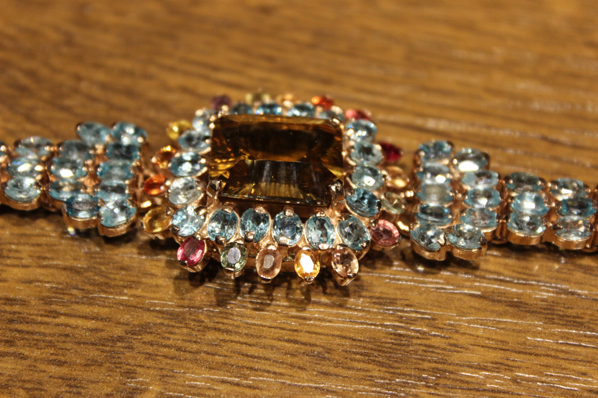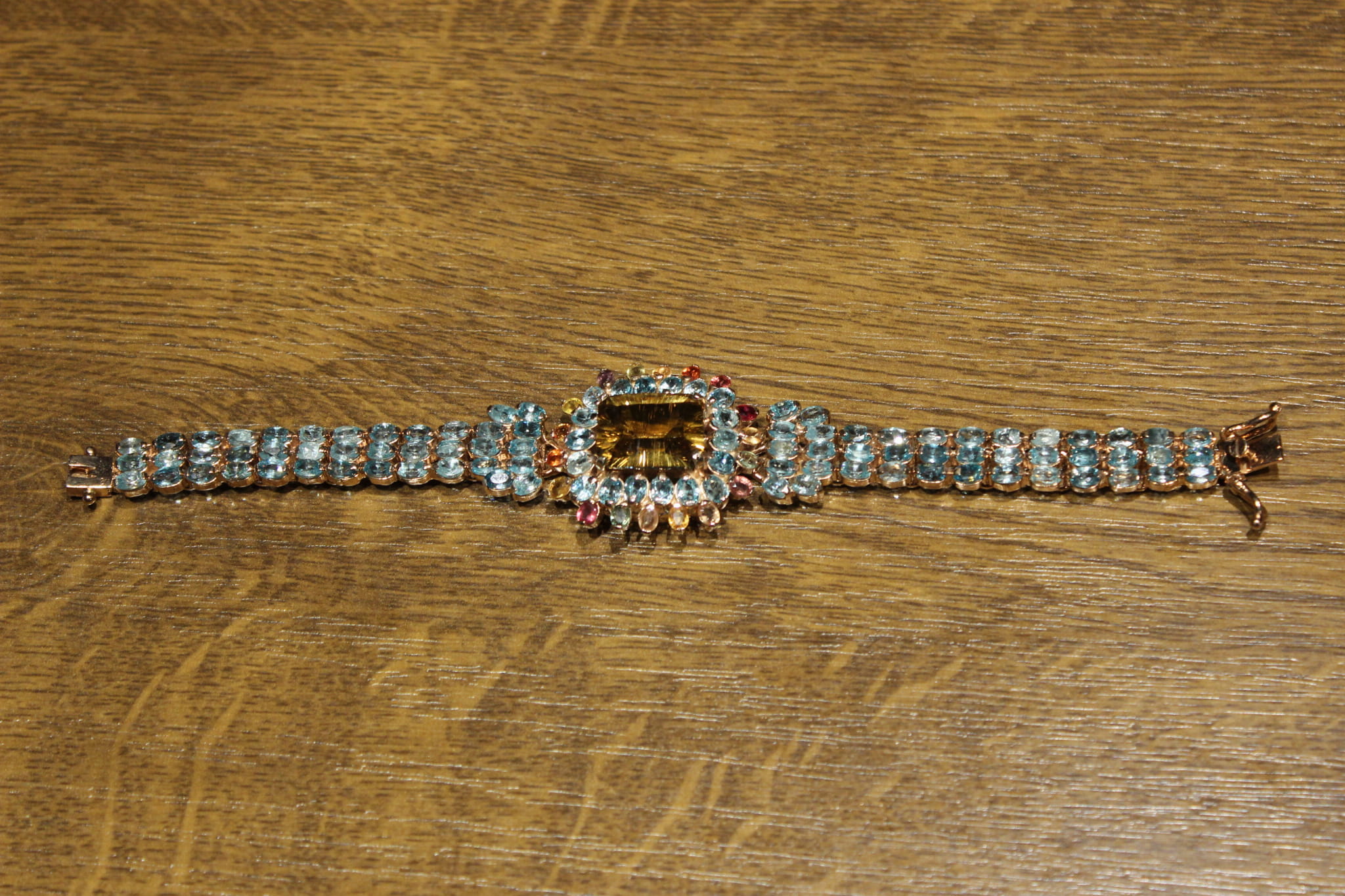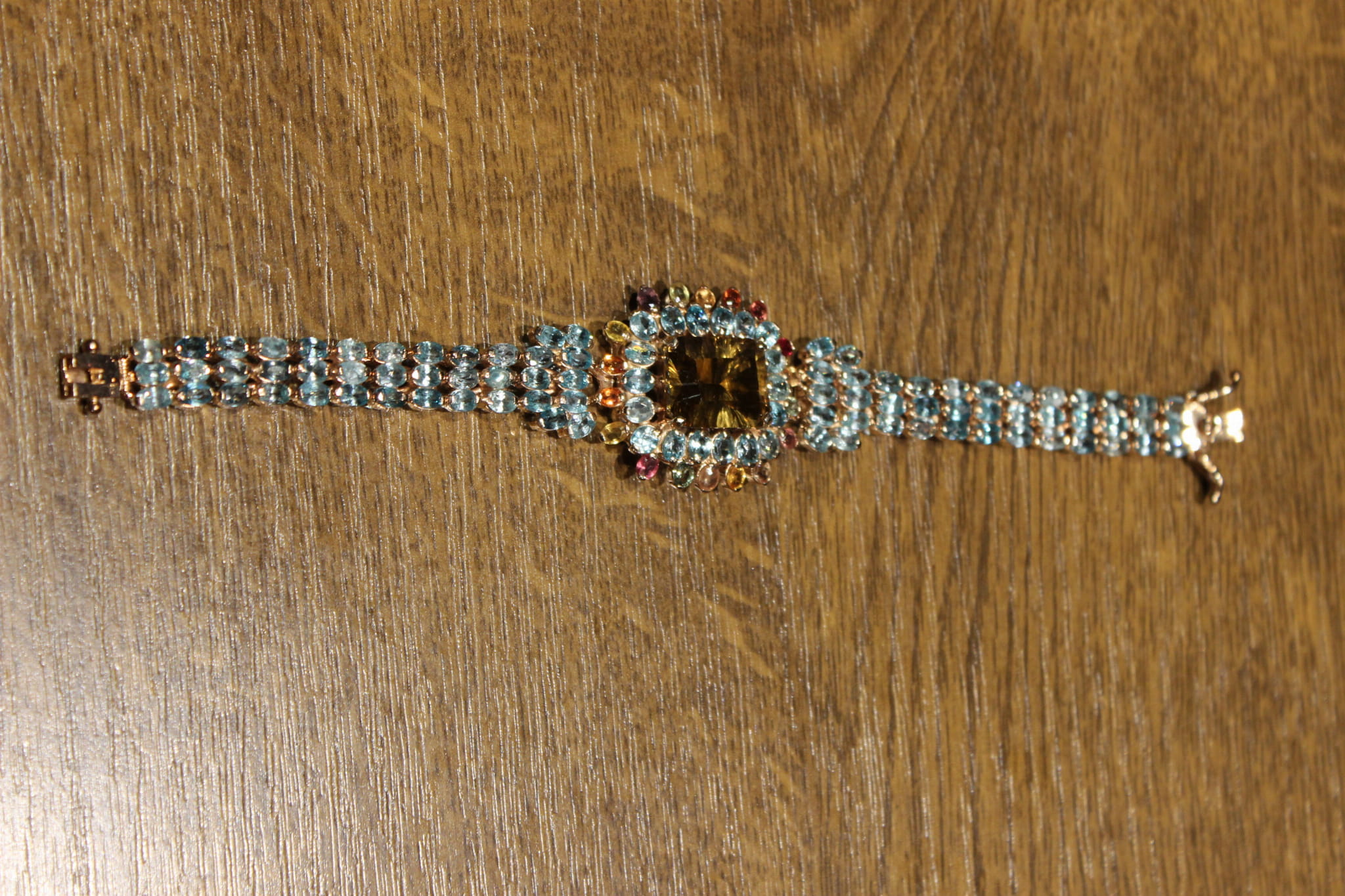 Ich verkaufe ein neues (ohne Etikett), rosévergoldetes Silberarmband - 925 mit natürlichem Zitronenquarz, Saphiren und Zirkonen.
