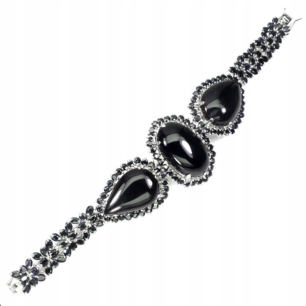 Ich biete ein neues, weißvergoldetes Silberarmband - 925 (0,916 spektrometrisch) mit natürlichen Jets und natürlichen Saphiren zum Verkauf an. Das Armband hat ein Zertifikat und eine Bewertung von 2.800 PLN. Es ist handgefertigt, gerollt, gelötet und kamerabeschichtet.