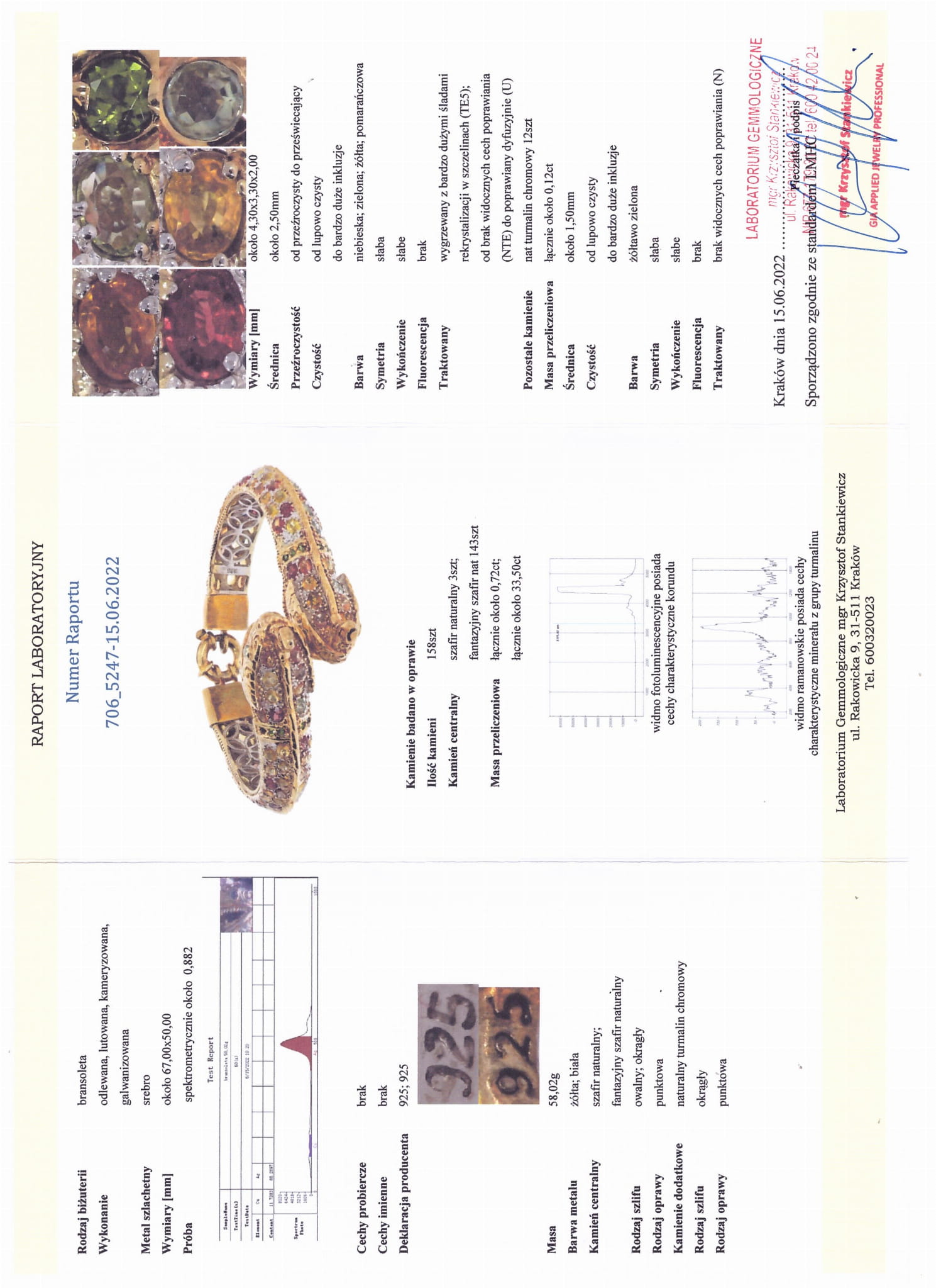 Ich verkaufe ein neues 14 Karat vergoldetes Silberarmband - 925 (spektrometrisch ca. 0,882) Armband mit natürlichen Saphiren und natürlichen Chromturmalinen.