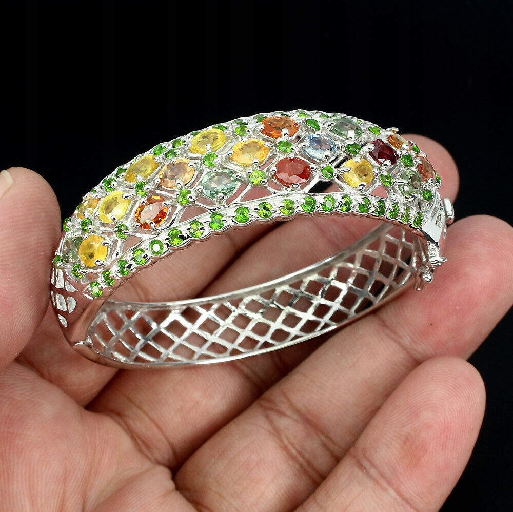 Ich verkaufe ein neues (ohne Etikett), vergoldetes mit Weißgold 14k - 925er Silberarmband mit natürlichen Saphiren und Diopsiden.