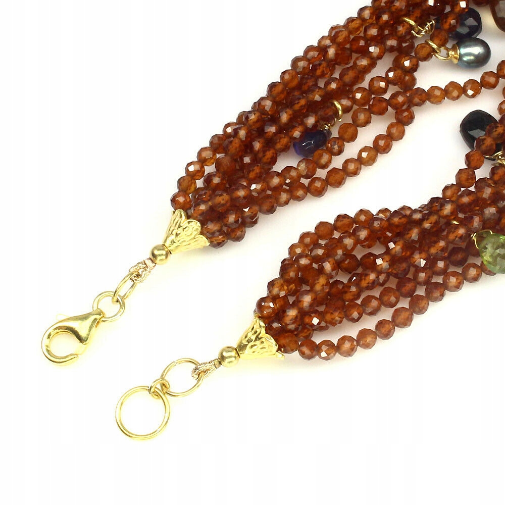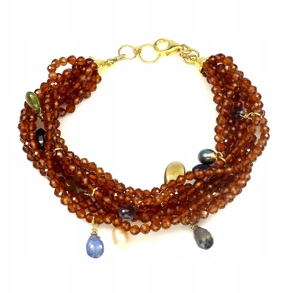 Ich verkaufe ein neues (ohne Etikett), vergoldetes Armband aus 14 Karat Gelbgold - 925er Silber mit natürlichen Granaten, Ioliten, Perlen und Turmalinen.