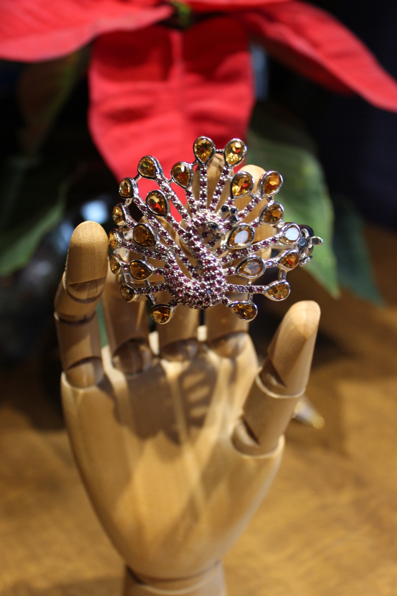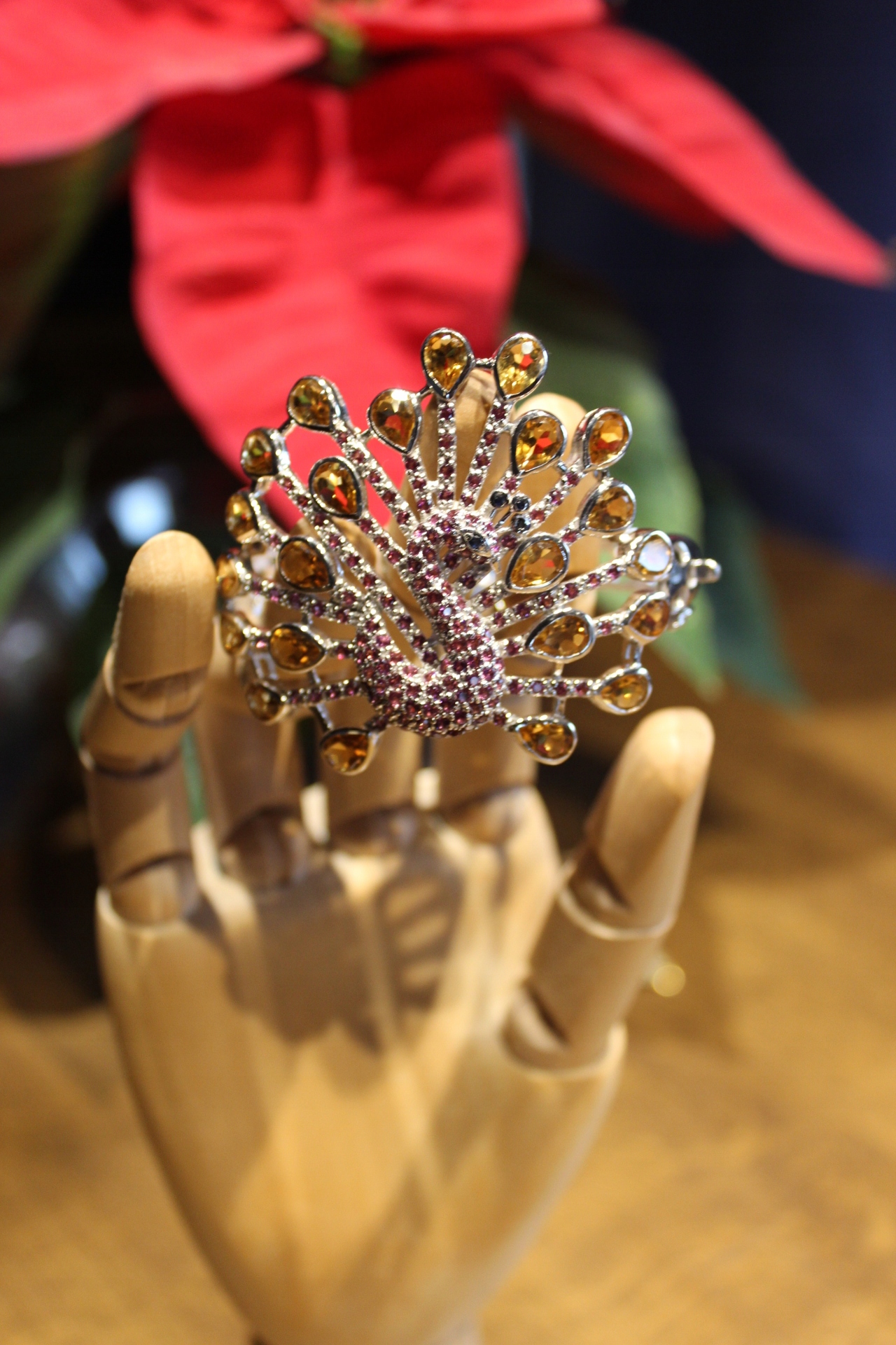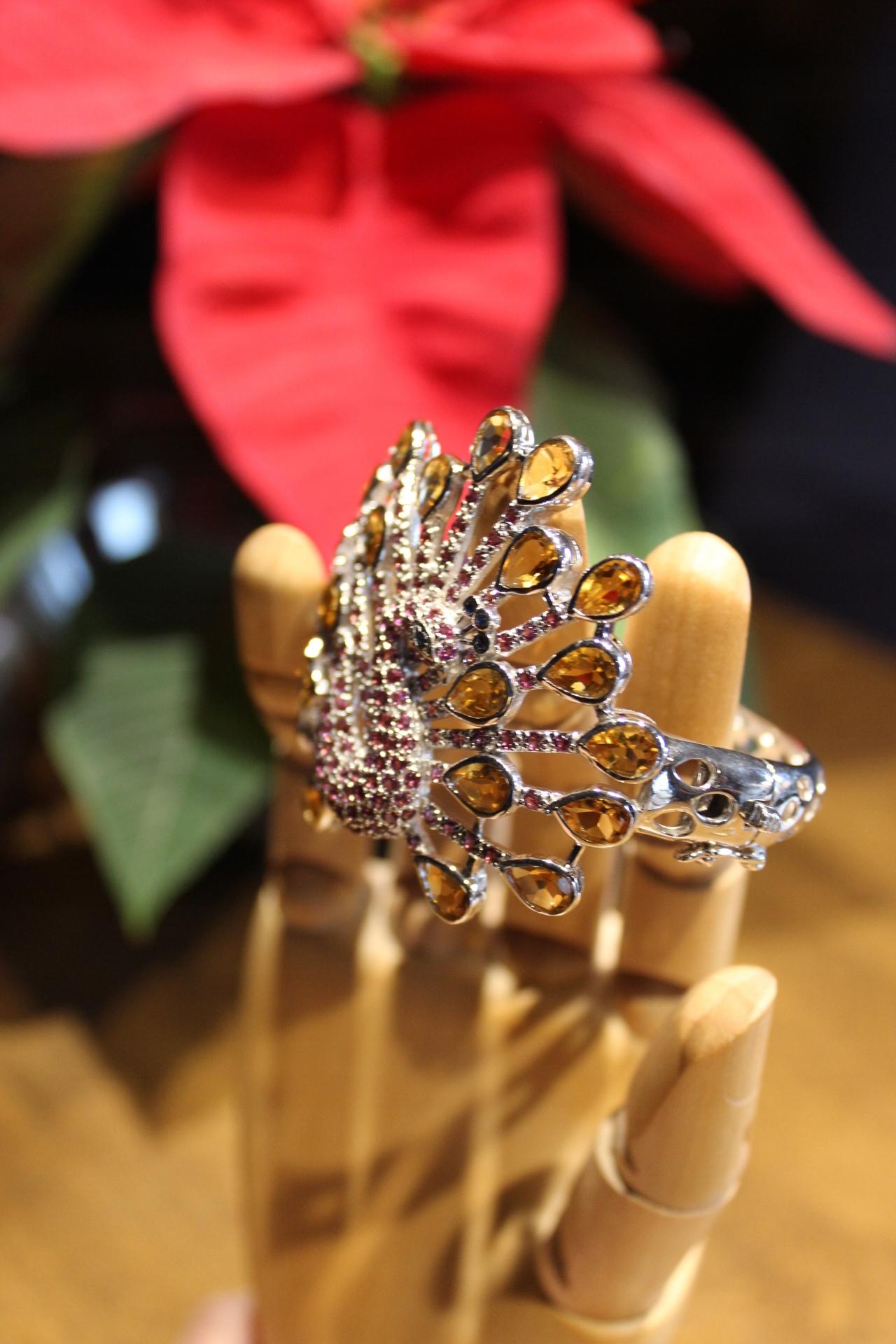 Silberarmband natürlicher Citrin Rhodolit Pfau