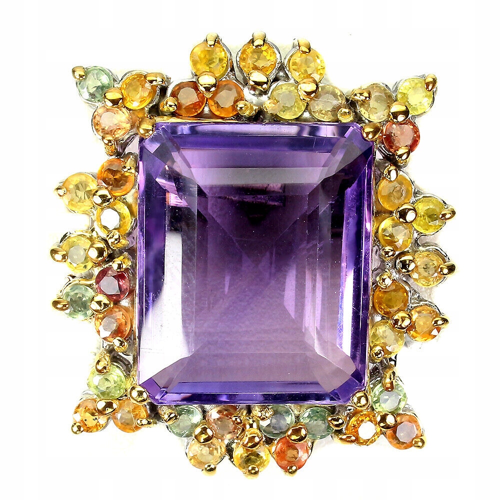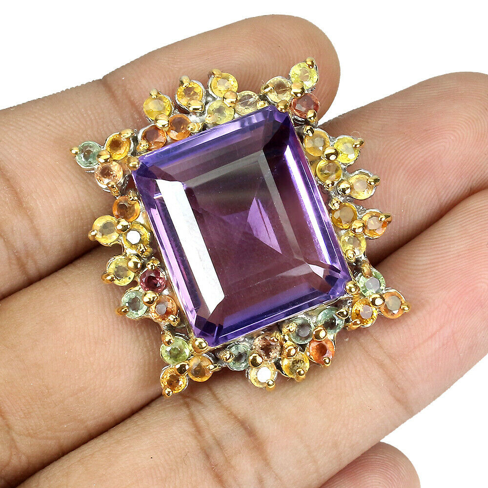 Wir bieten Ihnen hier eine neue, Silber vergoldet mit Weiß- und Gelbgold 14K - 925 - Brosche mit natürlichem Amethyst 32,18ct und Songea Saphiren.