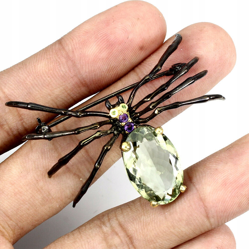 Silberbrosche mit natürlichen Amethysten 925 Spinne