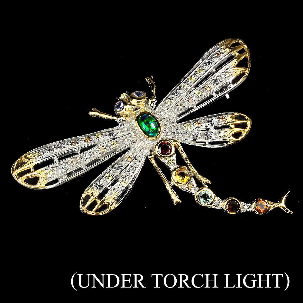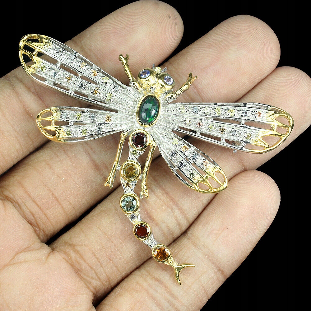 Silberbrosche schwarzer Opal natürlichen Libellen Saphiren