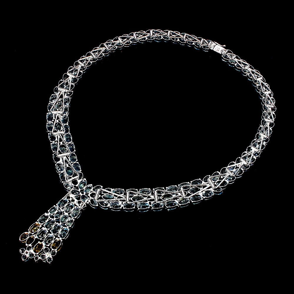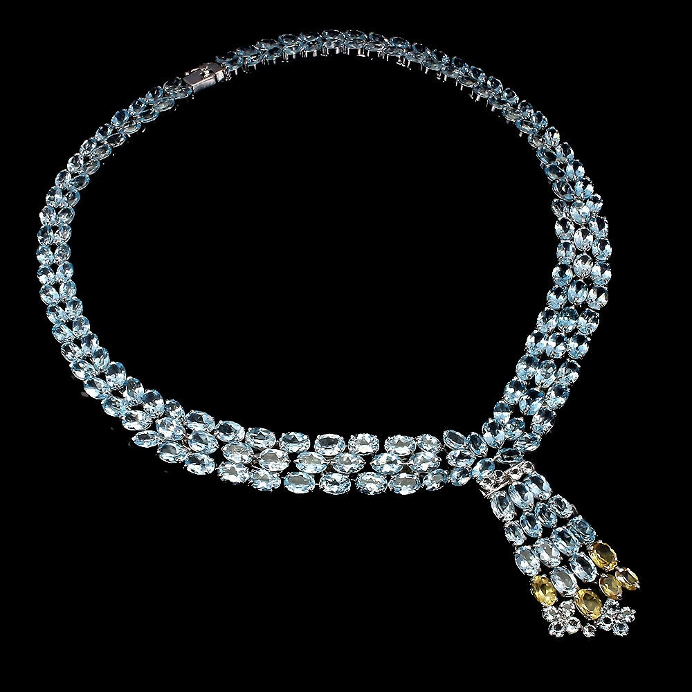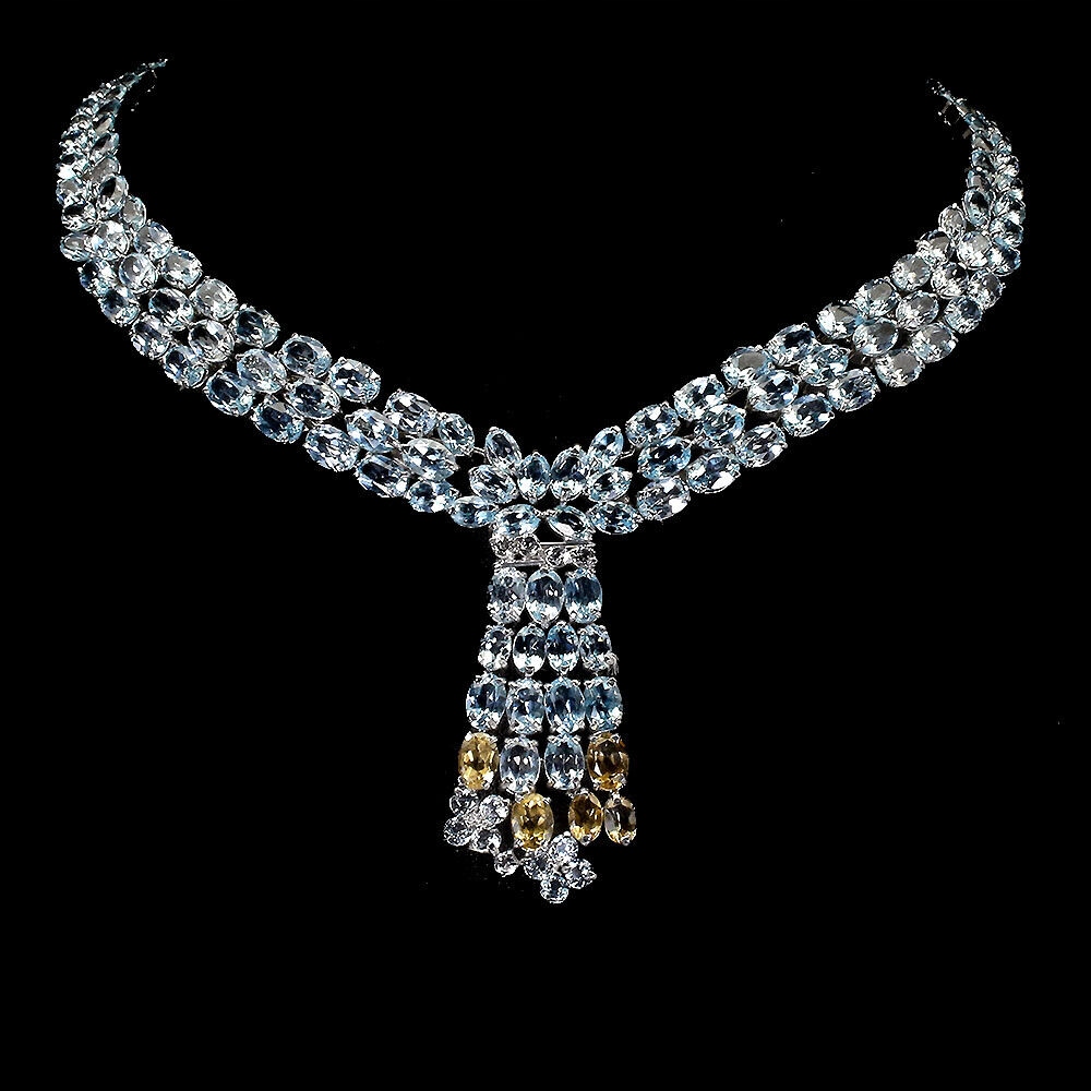 Wir bieten Ihnen eine neue, vergoldete Halskette aus 14-karätigem Weißgold und Silber mit einem Feingehalt von 925 mit natürlichem Sky Blue Topas, Citrin und weißem Topas.