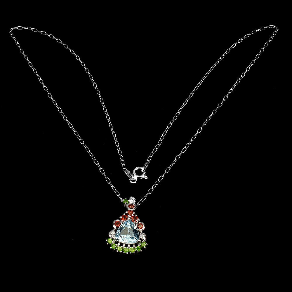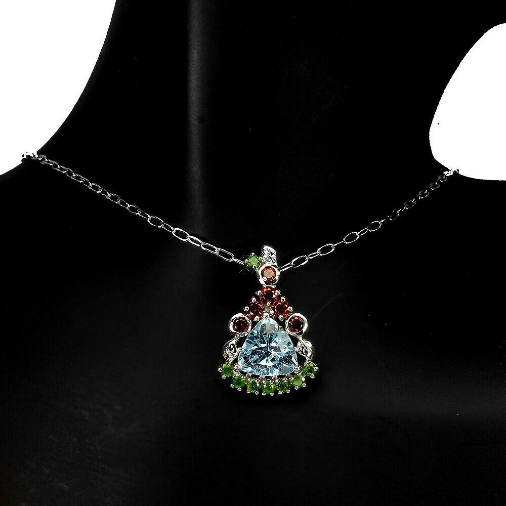 Wir bieten Ihnen eine neue Halskette aus 14 Karat Weißgold, Silber und 925er Sterlingsilber mit natürlichem Sky Blue Topas, Granaten und Diopsiden.