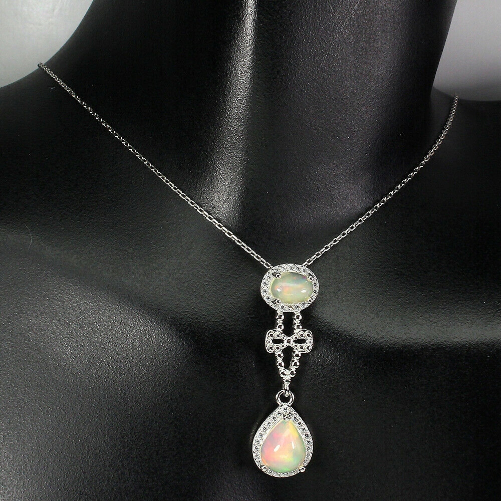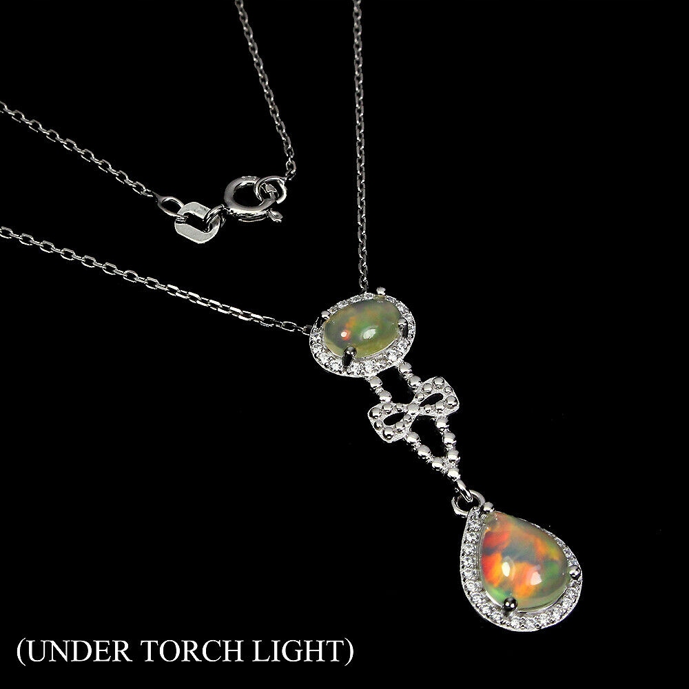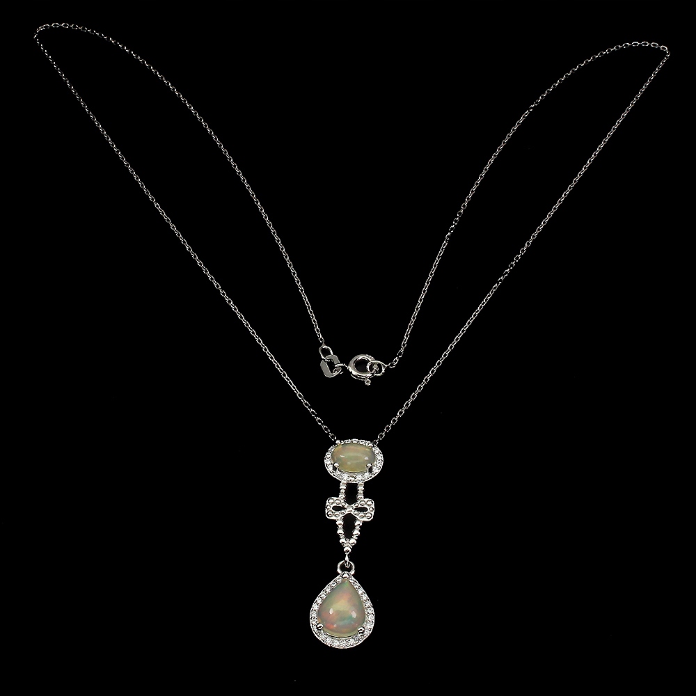 Wir bieten Ihnen eine neue, 14 Karat weiß vergoldete Halskette aus Silber - 925 mit natürlichen Feueropalen und Zirkonias.