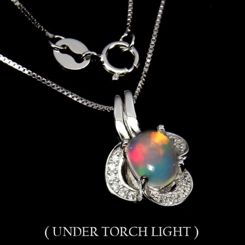 Silberne Feueropal Halskette mit zarten Zirkonia