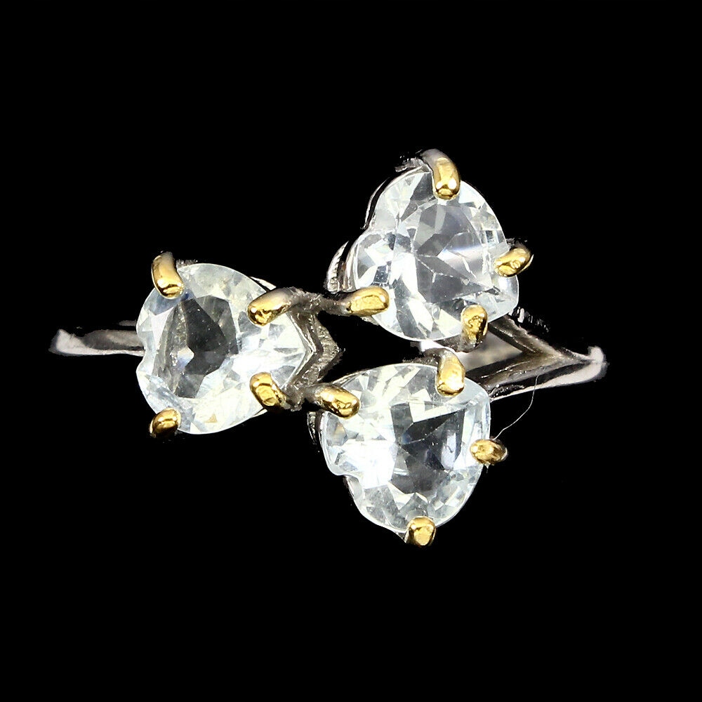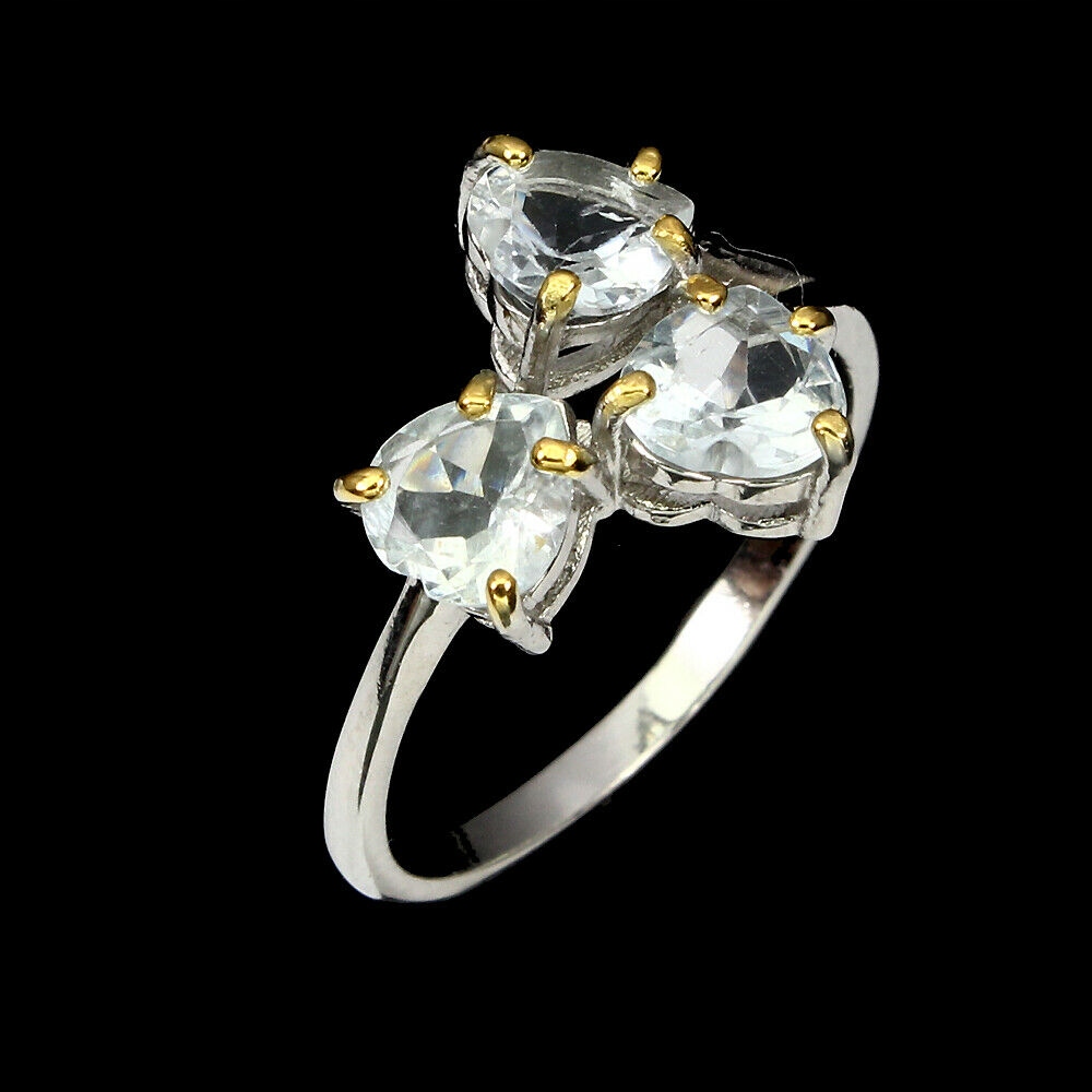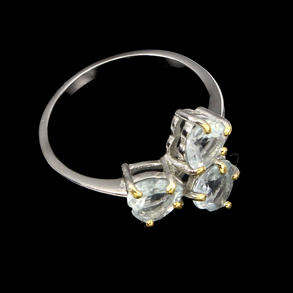 Silber - 925 - 14K vergoldeter Weiß- und Gelbgoldring mit natürlichen Aquamarinen.
