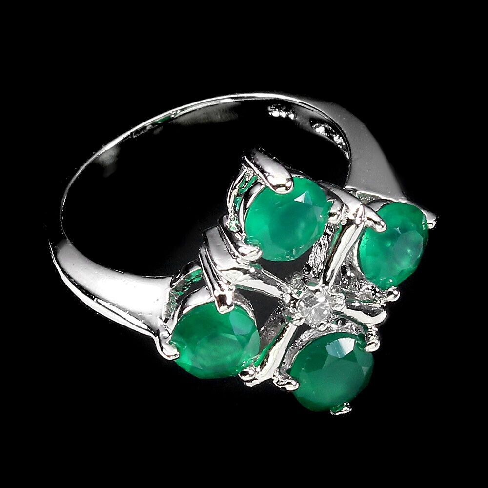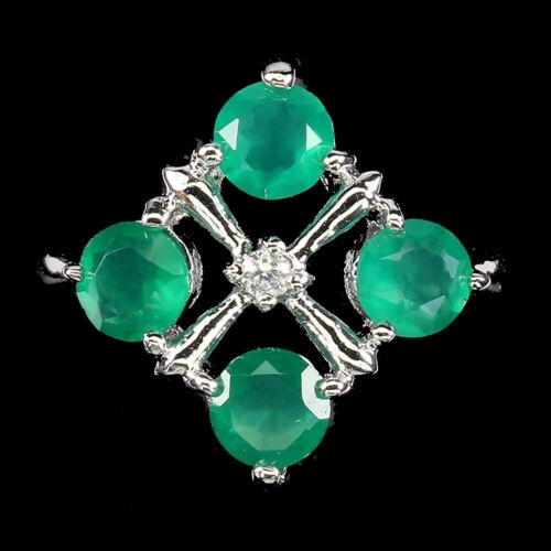Wir bieten Ihnen einen neuen, 14K Weißgold vergoldeten Silberring (925) mit natürlichem AAA-Aventurin und Zirkonia.