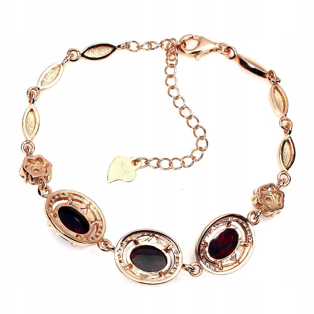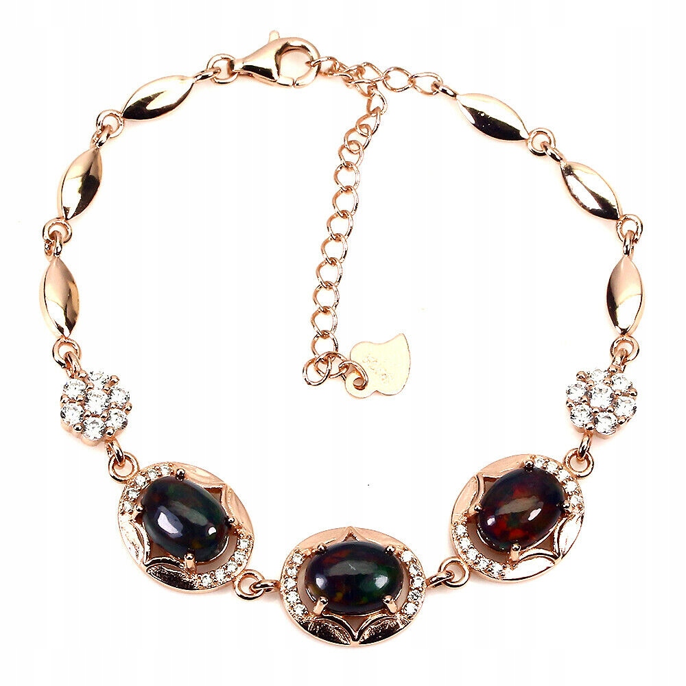 Wir bieten Ihnen ein neues, 14 Karat rosévergoldetes Armband aus Silber - 925 mit natürlichen schwarzen Opalen und Zirkonia an.