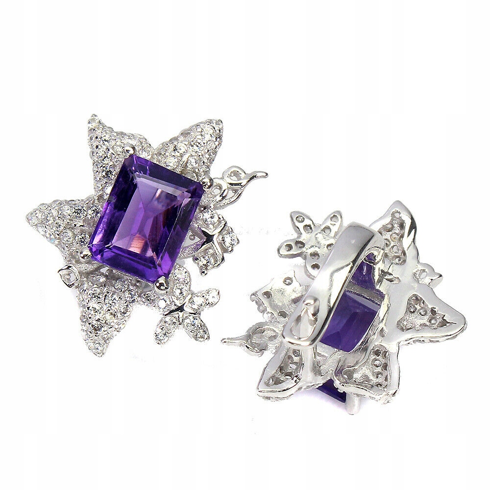 Silberohrringe 925 Zirkonia natürliche Amethyste 5